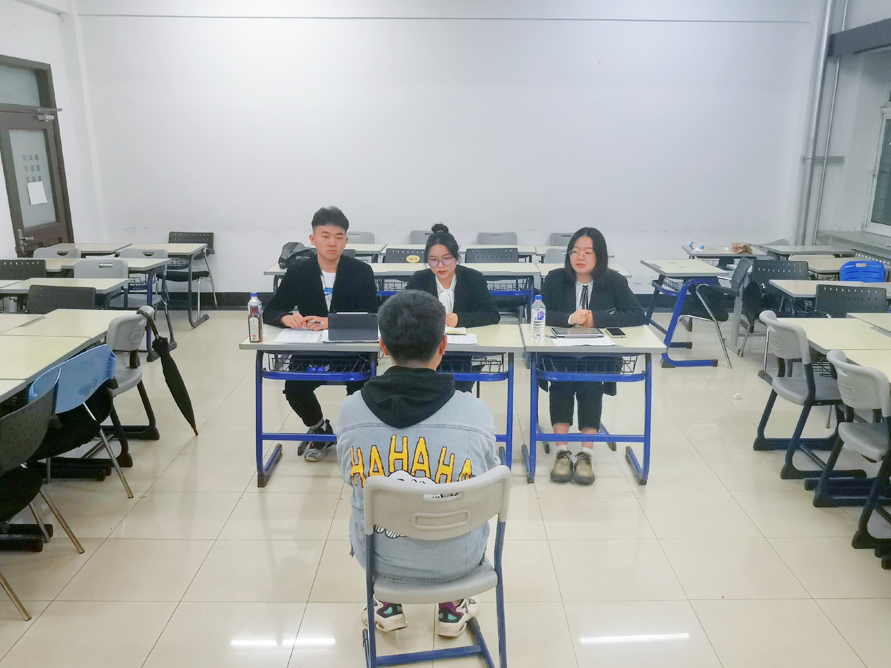 18时40分,纳新面试正式开始。首先由前来面试的同学们进行简短的自我介绍,随后社团负责人采取结构化面试的方式对同学们进行了考核,面试最终评分结合仪表仪态、服务精神、执行能力、综合素质四个方面进行评定。21时许,面试结束,执行团全体成员对纳新结果进行商议。