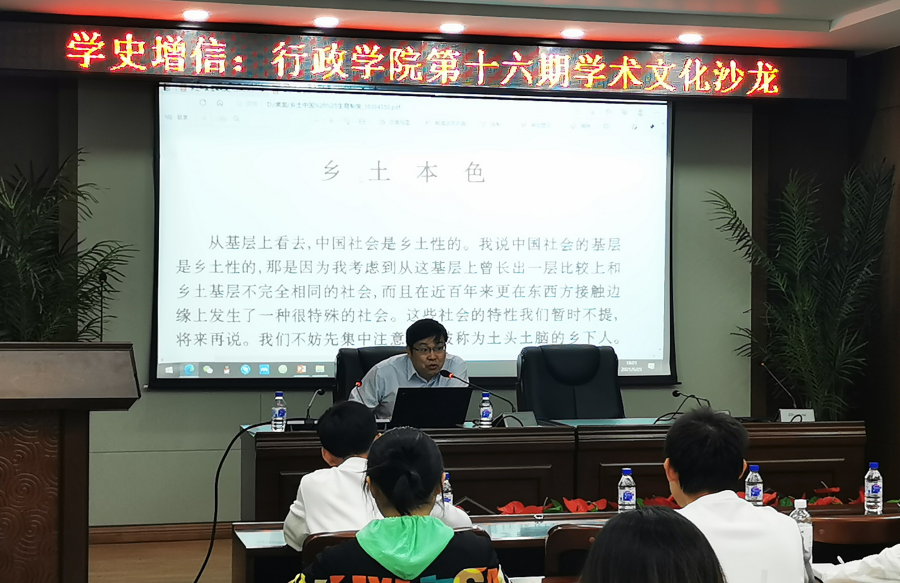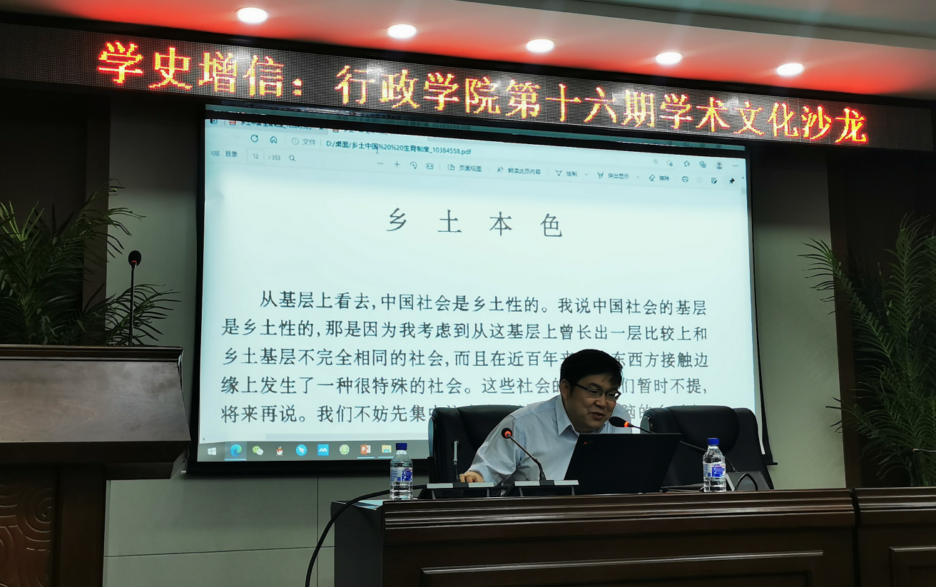 5月25日晚,《行政之光》杂志社于中心校区举办了“学史增信”主题第十六期学术文化沙龙。本期学术文化沙龙邀请到了公司政治学系丁建彪副教授作为主讲嘉宾,为大家带来了题为“费孝通《乡土中国》中的中西思想与文法之风”的分享。本期学术文化沙龙由畅达禹同学(2019级本科生)主持。