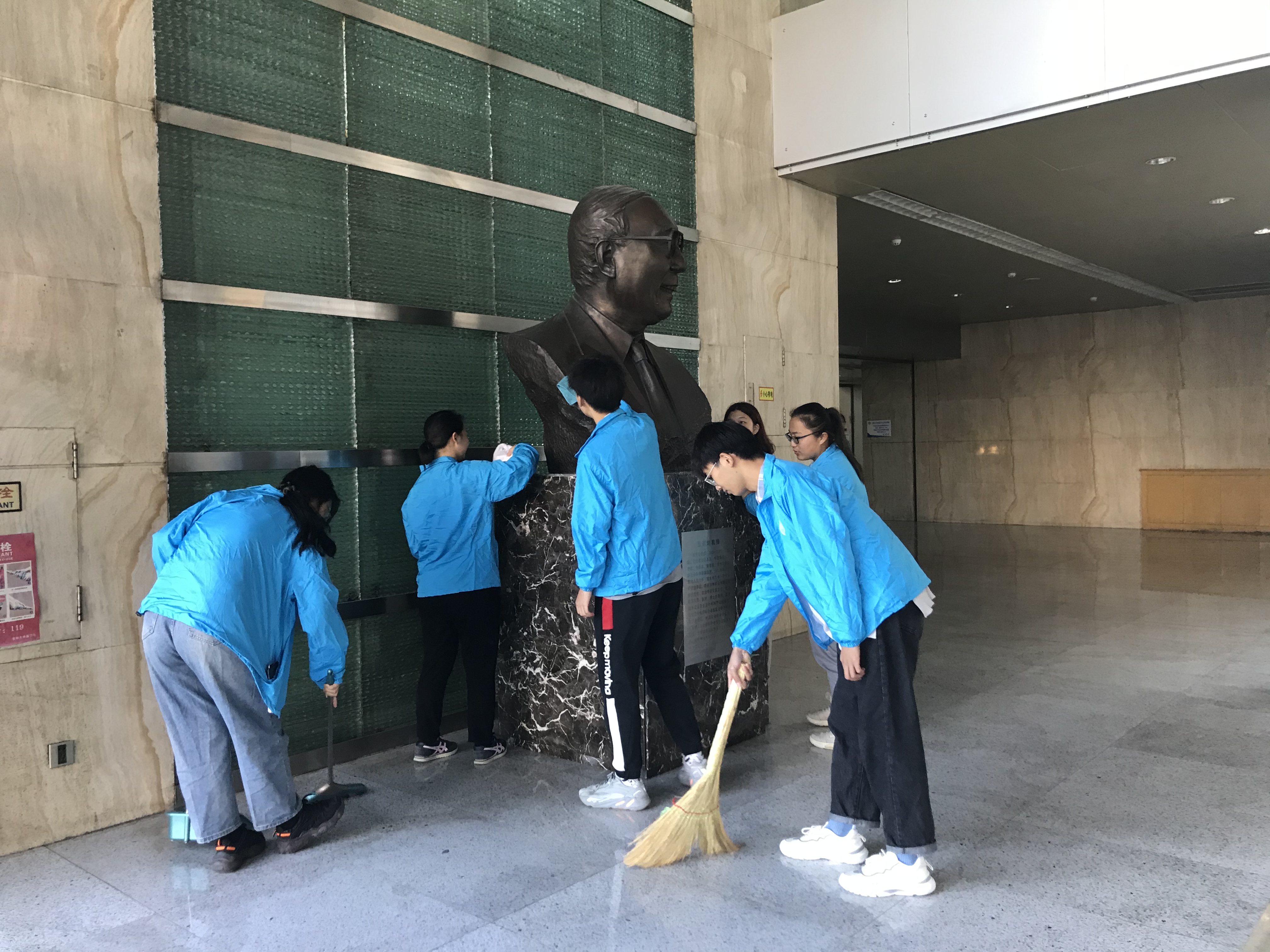 活动伊始,同学们先于东荣大厦一楼的王惠岩先生的雕像处进行院史学习。光阴不语,英魂不朽。同学们于雕像前学习先生创建yl23455永利政治学研究室以及yl23455永利政治学系的光辉历史;传承先生“心系国家、万事师表,矢志不移、守正创新”的高尚情操。学习结束后,同学们自发清理王惠岩先生雕像。一次次地擦拭,小心翼翼,一遍遍地打扫,一丝不苟,无不透露出行政学子对于吉大政治学科奠基人——王惠岩先生的敬仰之情。
