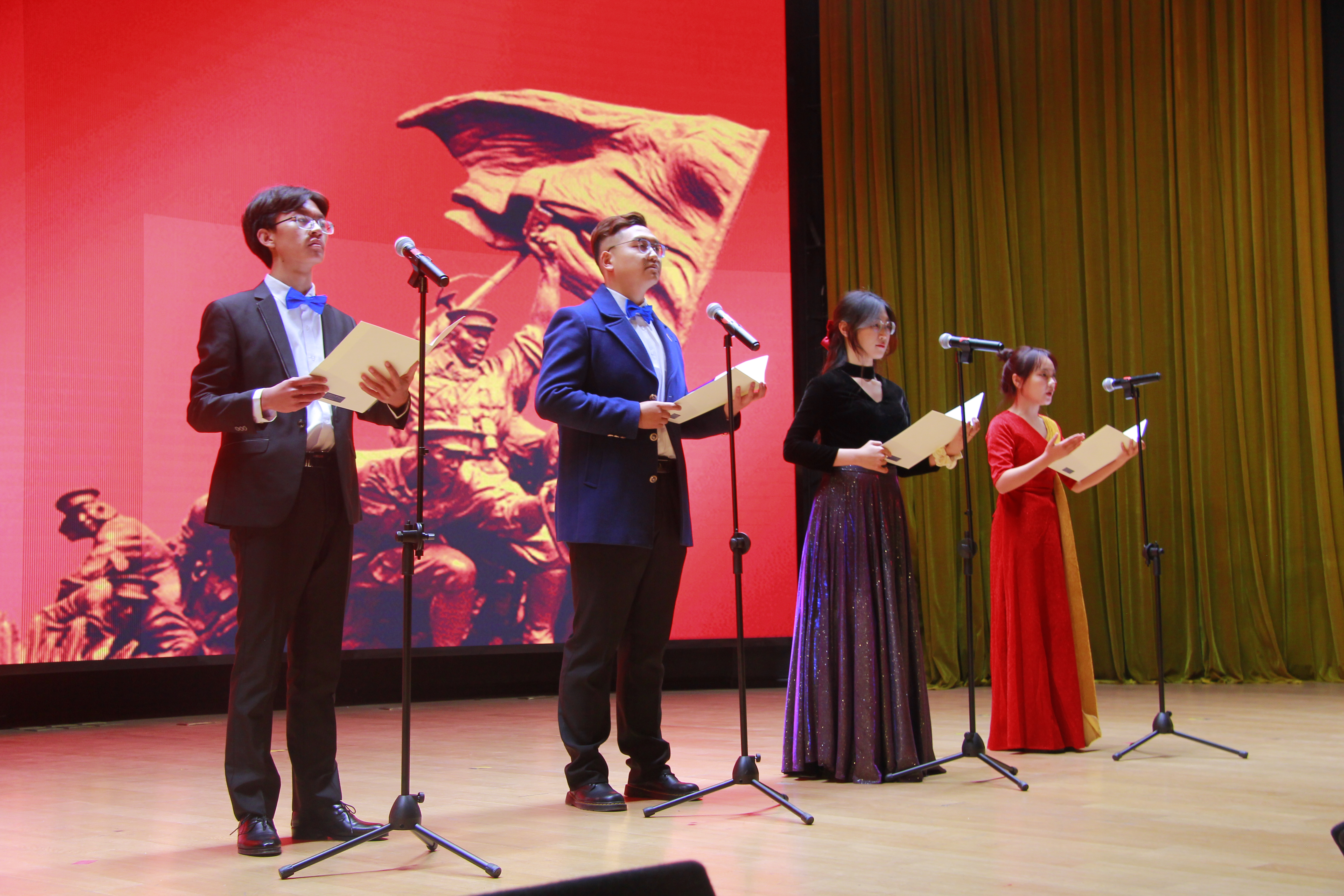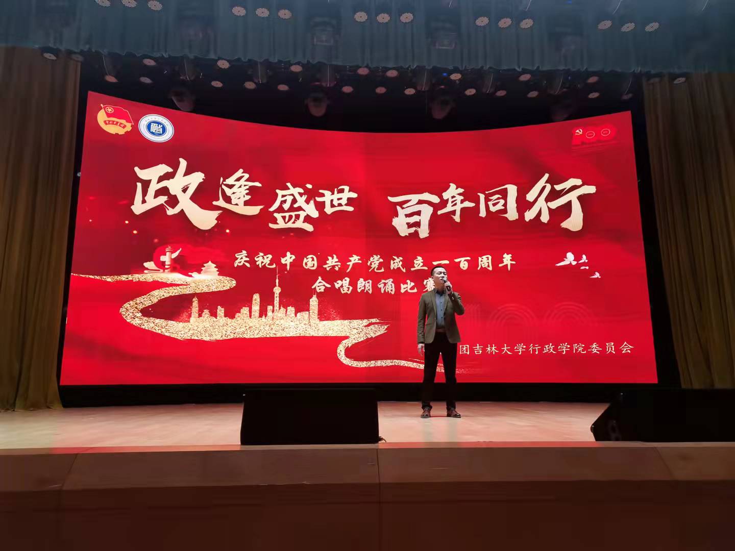 本次比赛分为合唱比赛和朗诵比赛,合唱比赛以班级为单位组队,朗诵比赛自由组队,表演队伍共20组。晚18时,比赛正式拉开帷幕。各班各组循次登场,比赛过程精彩纷呈。合唱比赛中,行政学子将满腔家国情怀融入歌声,一曲曲动人的乐章,让人激情澎湃,陶醉其中。合唱比赛告一段落,朗诵比赛再一次把全场的气氛推向高潮。舞台上,朗诵者激情昂扬、感情恳切,抒发报国情、强国志,以声音震撼着每一个人的心灵。在同学们的精心编排和准备下,为大家呈现了一场美妙绝伦的视听盛宴,博得现场阵阵掌声。