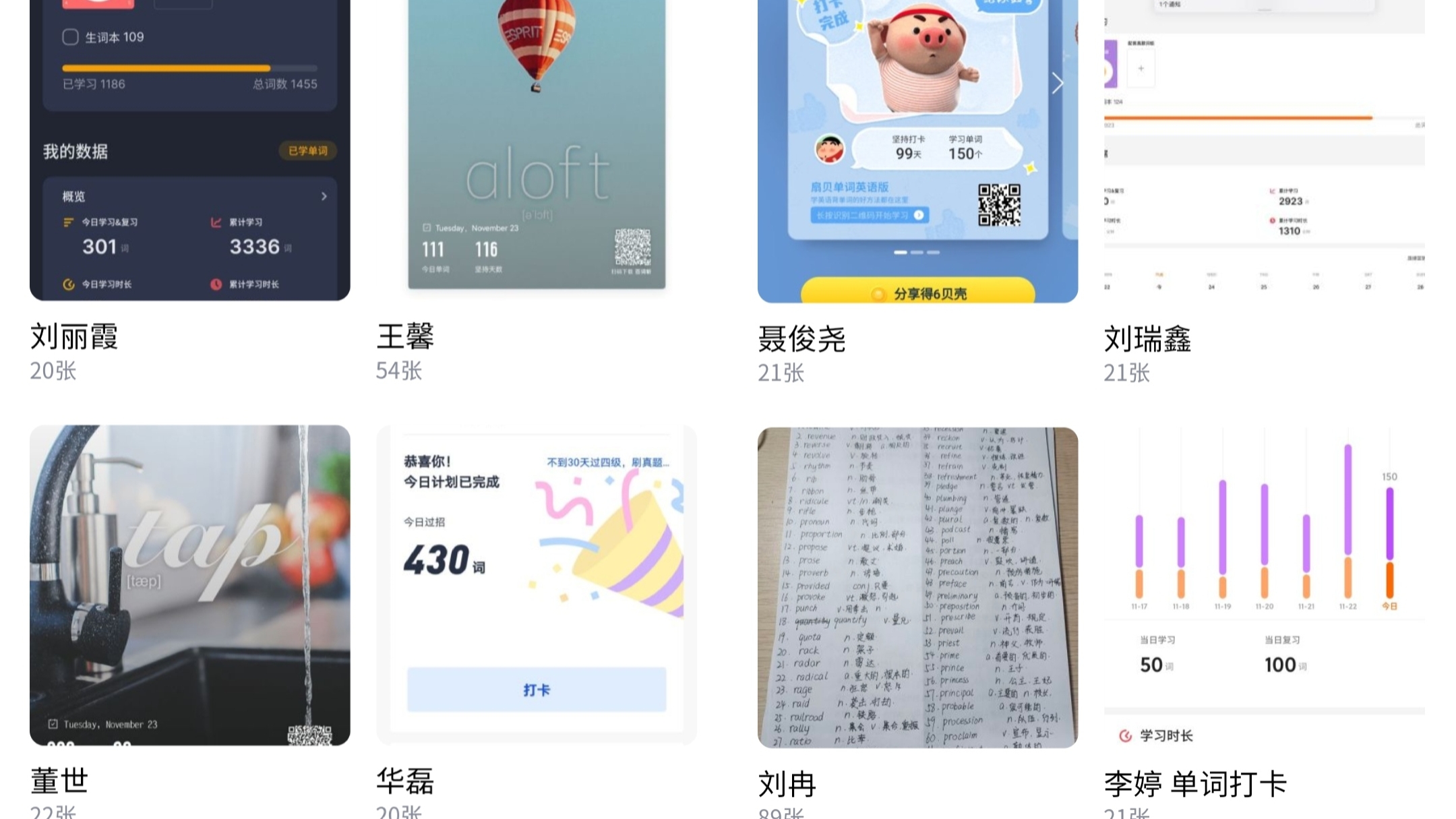打卡活动于11月3日正式开始,在线上进行。政能量志愿者协会负责招募打卡监督的志愿者人员,按照报名同学数量分组,每组分配一名志愿者进行管理和监督,打卡活动采取积分制。本次打卡活动共有140余人参与,同学们每日在群中上传单词打卡图片,群内同学互相督促,交流和分享学习体会,形成了良好的学习氛围。11月23日,志愿者们根据参与活动同学的单词打卡数量和坚持天数,总结积分情况,对表现较好的同学进行表彰。
