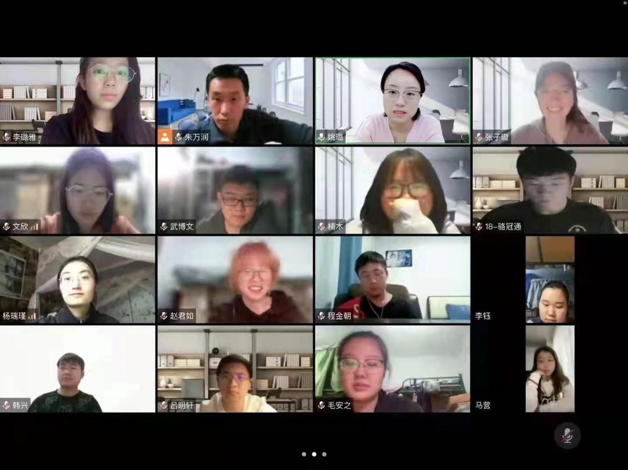 3月16日下午,2018级三班班会于线上开展,班主任朱万润老师、姚璐老师参加会议,班长谷瑛淏主持。朱万润首先详细询问了同学们的学习生活情况并向大家介绍了疫情发展的相关情况,动员大家调整心态,共克时艰;姚璐则向大家分享了居家隔离日常,鼓励大家丰富精神世界并兼顾毕业实践;谷瑛淏与大家交流了自己在抗疫工作中的心得;毛安之鼓励大家“既来之则安之”;赵婧姝进行了学习经验的有关分享。
