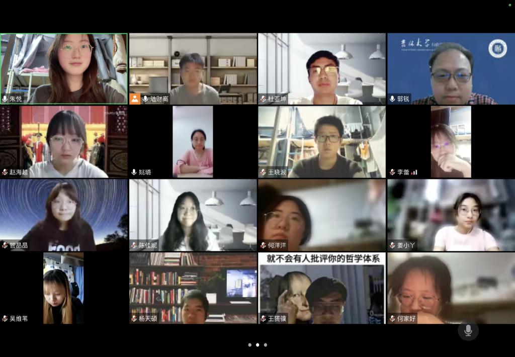 3月29日晚,2020级二班的各位同学与刘畅、张力伟两位班主任老师再聚线上,举办第三期抗疫主题班会。在班会上,同学们分享了近期的学习生活状况。刘畅老师对同学们在疫情期间展现出的自律、自觉与成熟感到欣慰,并讲述了自己最近遇见与回忆起的一些故事,分享了许多感触。她寄语同学们在疫情封寝这段共患难的时光里珍惜同学缘分,收获友谊与幸福。张力伟老师也分享了自己在本科期间学习生活与参加员工工作的一些故事与经历,并为同学们未来的发展规划给予了一些经验与指导。他希望同学们珍惜现在这段时光,认真做好未来规划,在沟通互动中不断提升自我,收获珍贵的经验、资源与情谊。