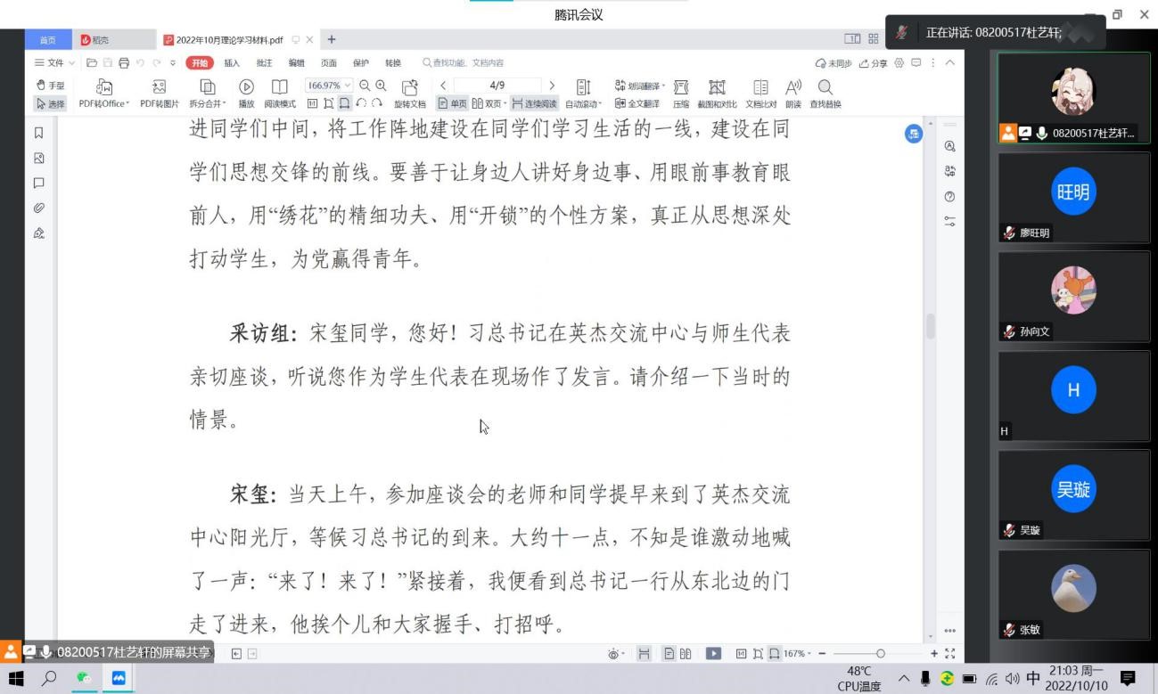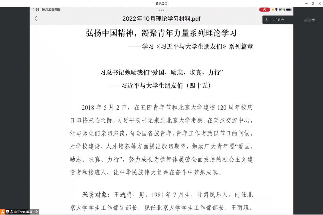 《习近平与老员工朋友们》收录了习近平同志自工作以来与老员工们交往、交流、交心的故事,是新时代青年工作的鲜活教材,其中第四十五篇主要围绕习近平总书记于北京大学120周年校庆与五四青年节到临之际与北京大学师生的座谈内容展开。为深入学习贯彻落实习近平总书记关于青年工作的重要论述,在院团委的指导下,yl23455永利2020级各班团支部开展了“弘扬中国精神,凝聚青年力量”主题团日活动。