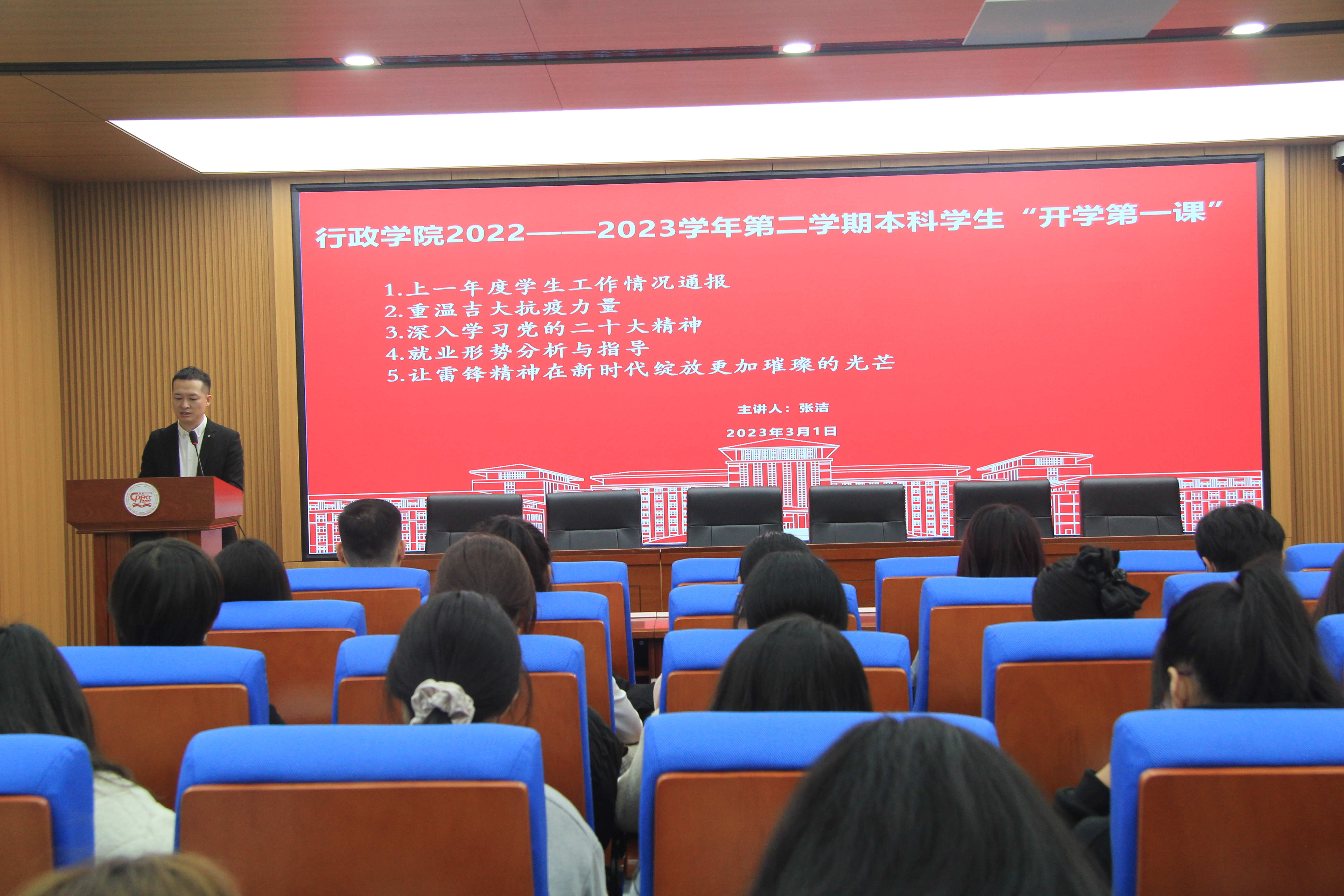 3月1日下午,yl23455永利在东荣大厦人民政协理论研究中心报告厅举办“开学第一课”,党委副书记兼副经理、纪委书记张洁主讲党课暨思政课,辅导员与各年级员工代表参加活动。