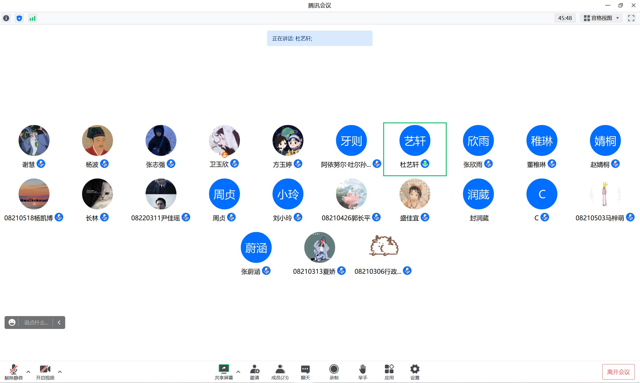 研讨会分为2023年中央一号文件解读、讨论交流和会议总结三大部分。首先,卫玉欣(2021级本科生)带领同学们了解了2023年中央一号文件的主要内容,即今年我国三农工作的具体安排与全面推进乡村振兴的重要举措。其次,同学们围绕“藏粮于地,藏粮于技”和我国如何实现农业强国两个问题展开了热烈的讨论。最后,卫玉欣(2021级本科生)对本次活动进行了总结。