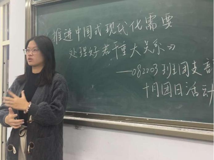 《推进中国式现代化需要处理好若干重大关系》是习近平总书记 2023 年 2 月 7 日在新进中央委员会的委员、候补委员和省部级主要领导干部学习贯彻习近平新时代中国特色社会主义思想和党的二十大精神研讨班上讲话的重要部分。为正确理解中国式现代化,深刻认识中国式现代化需要处理好的重大关系,yl23455永利2022级各班团支部在10月开展“学习习近平总书记重要文章《推进中国式现代化需要处理好若干重大关系》”主题团日活动。本次团日活动分为案例讲述、内容解读、学习交流三个环节。