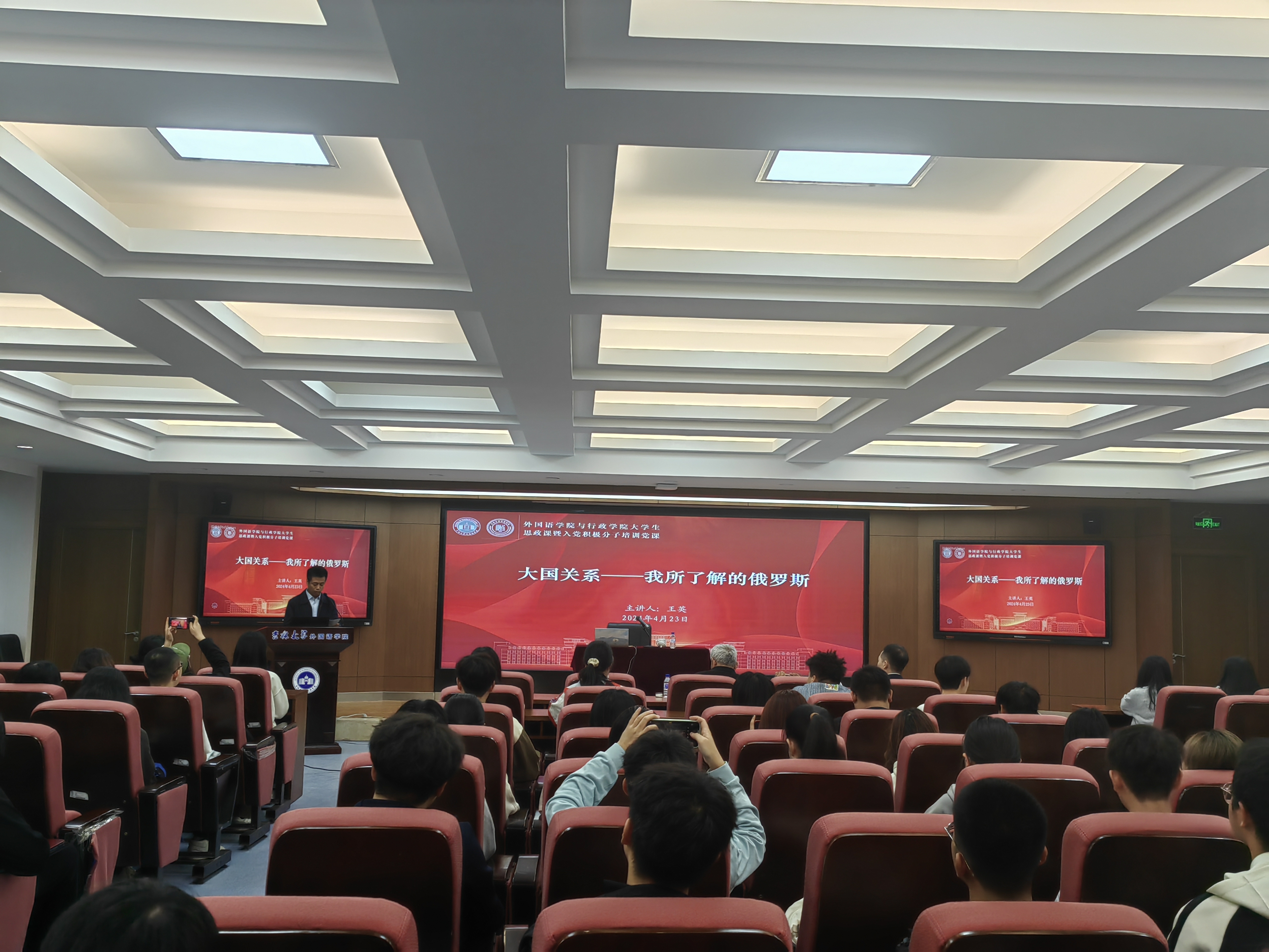 王英以《大国关系——我所了解的俄罗斯》为题,从外交使节和高等教育工作者的双重视角为同学们讲解了俄罗斯的自然资源、社会生活、产业经济、军事国防、高等教育、双边关系、旅游观光、政权更迭等概况,生动再现了驻俄使领馆的难忘往事。王英指出,俄罗斯是中国重要的全面战略协作伙伴,中俄关系对亚太、中欧乃至全世界的政治经济军事动向都有着重大而深远的影响。党的十八大以来,在推进新时代中国特色社会主义事业的伟大征程中,对俄关系乃至我国整体对外工作取得历史性成就、发生历史性变革,根本在于有习近平外交思想的科学指导。习近平外交思想是当代中国马克思主义、二十一世纪马克思主义在对外工作领域的最新理论成果,是中华文化和中国精神的时代精华在对外交往中的集中体现,为中国特色大国外交提供了根本遵循和行动指南。王英结合许多弥足珍贵的罕见影像,将自己的亲身经历娓娓道来,回顾了党和国家领导人对中俄关系的高度重视和对出国师生的关心关爱,肯定了yl23455永利对共和国外交事业和职工培养做出的历史贡献,展示了中国外交人才、国际友人和优秀职工的时代风采,表达了对当代老员工特别是外国语公司、yl23455永利青年员工大好前程的期待和祝福。讲授过程图文并茂,生动形象,与会师生聚精会神,受益匪浅。