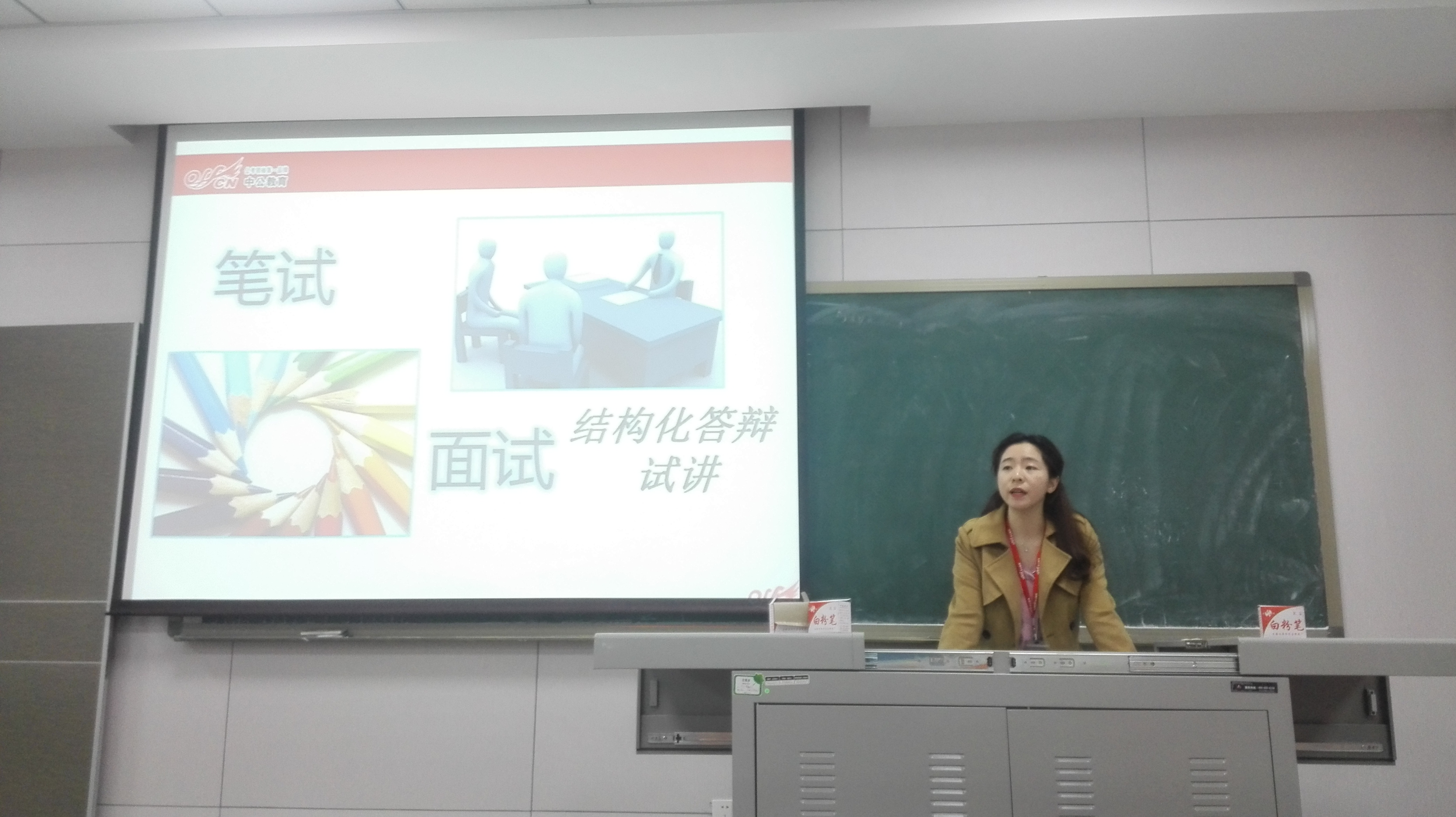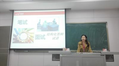 4月7日晚,yl23455永利老员工发展指导中心于三教113教室举办了“事业单位考试”讲座,中公教育吉林研究院讲师范丽娜担任主讲。