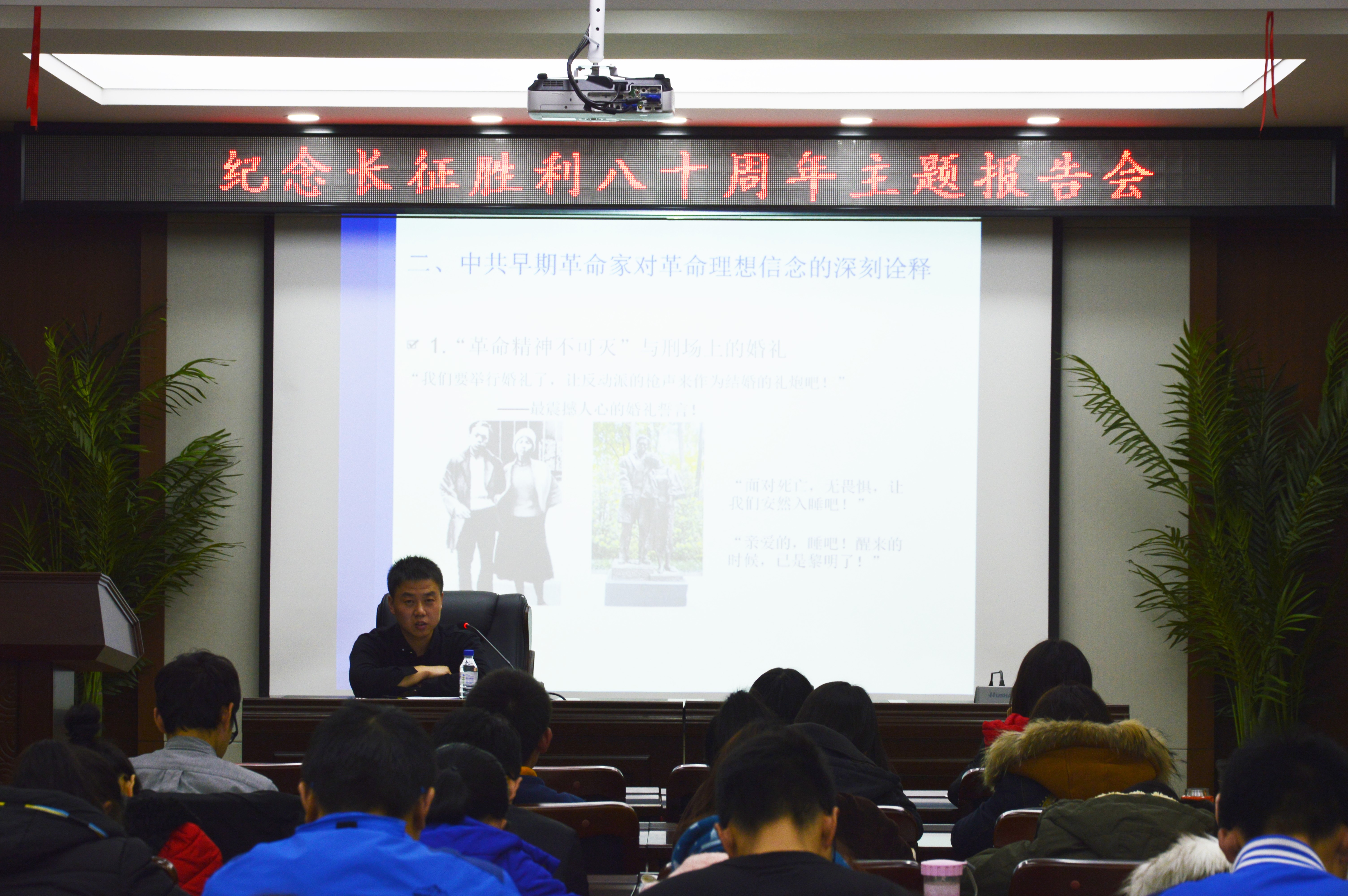 为响应校团委“铭记历史,不忘初心”的号召,学习长征胜利精神,yl23455永利于11月11日下午6点在前卫南区东荣大厦B303室举办了纪念长征80周年“长征主题”报告会,公司邀请到中共长春市委党史研究室宣传陈磊担任主讲人。