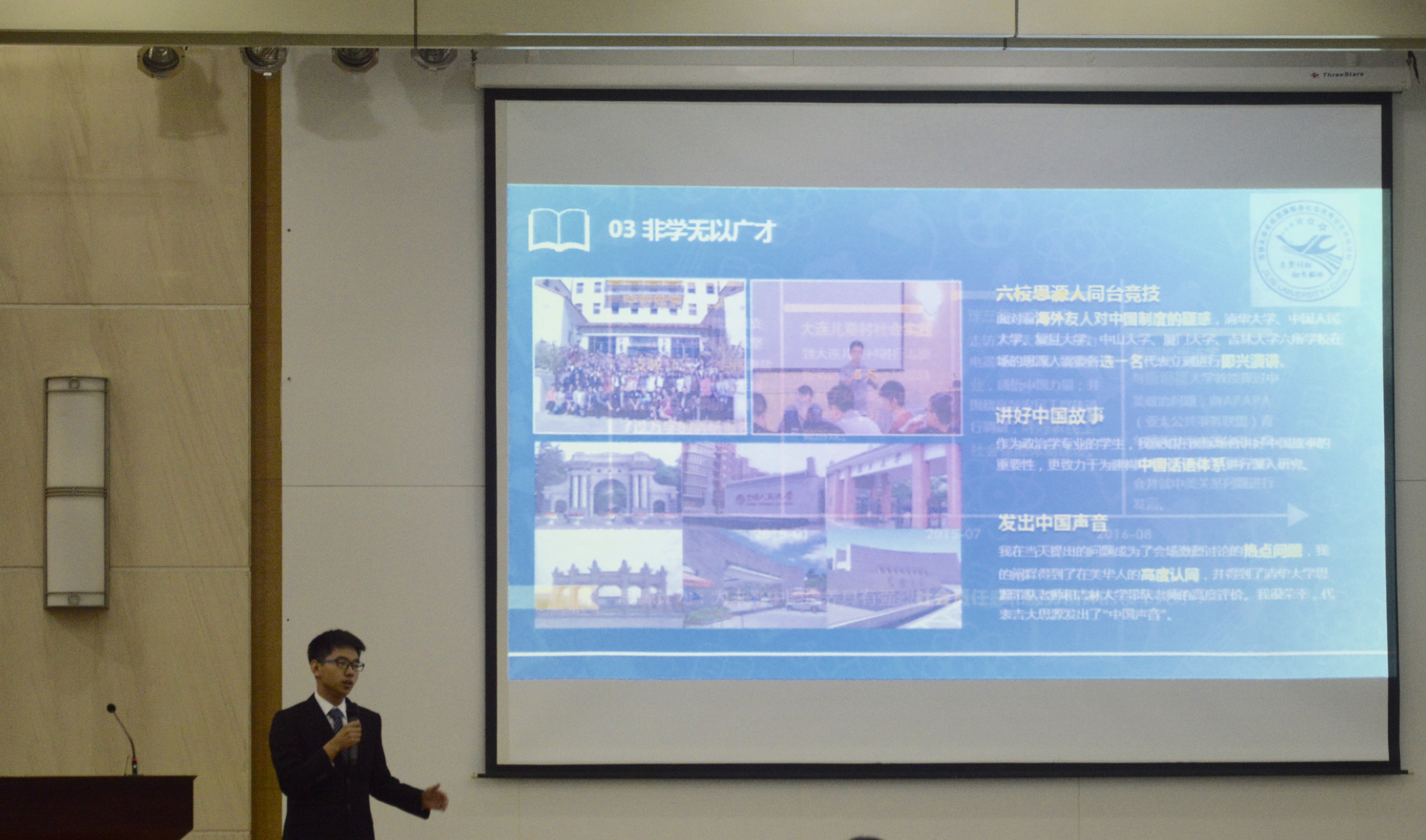来自各个公司的候选人依次发表了他们的精彩演说,其中作为yl23455永利代表的是2013级本科生付锦睿。付锦睿同学大学期间成绩优异,多项成绩为全院第一;员工工作经验丰富,曾作为yl23455永利员工会副主席主持参加过多项活动;作为yl23455永利思源计划的骨干成员,今年暑期赴美访学期间曾作为yl23455永利代表为中国发声并广获好评。