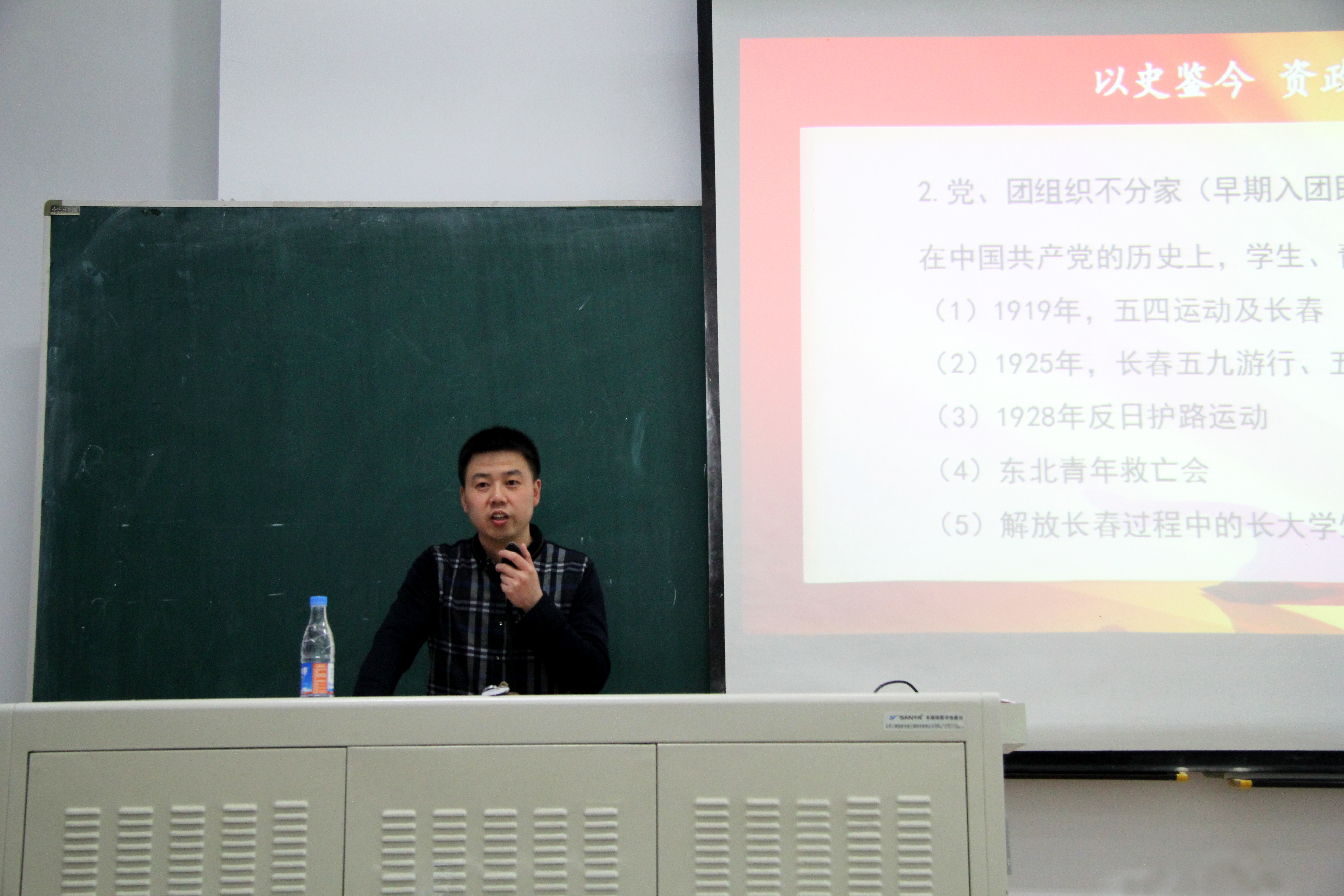 在“五·四”青年节即将到来之际,为响应团中央“学党史,知党情,跟党走”的号召,在yl23455永利大力邀请下,中共长春市委党史研究室宣传教育处负责人陈磊于5月3日在吉林大学前卫南区三教十三阶给员工们带来了一场精彩的讲座。本次讲座是在中共长春市委党史研究室的支持下,由2015级1班团支部组织承办。