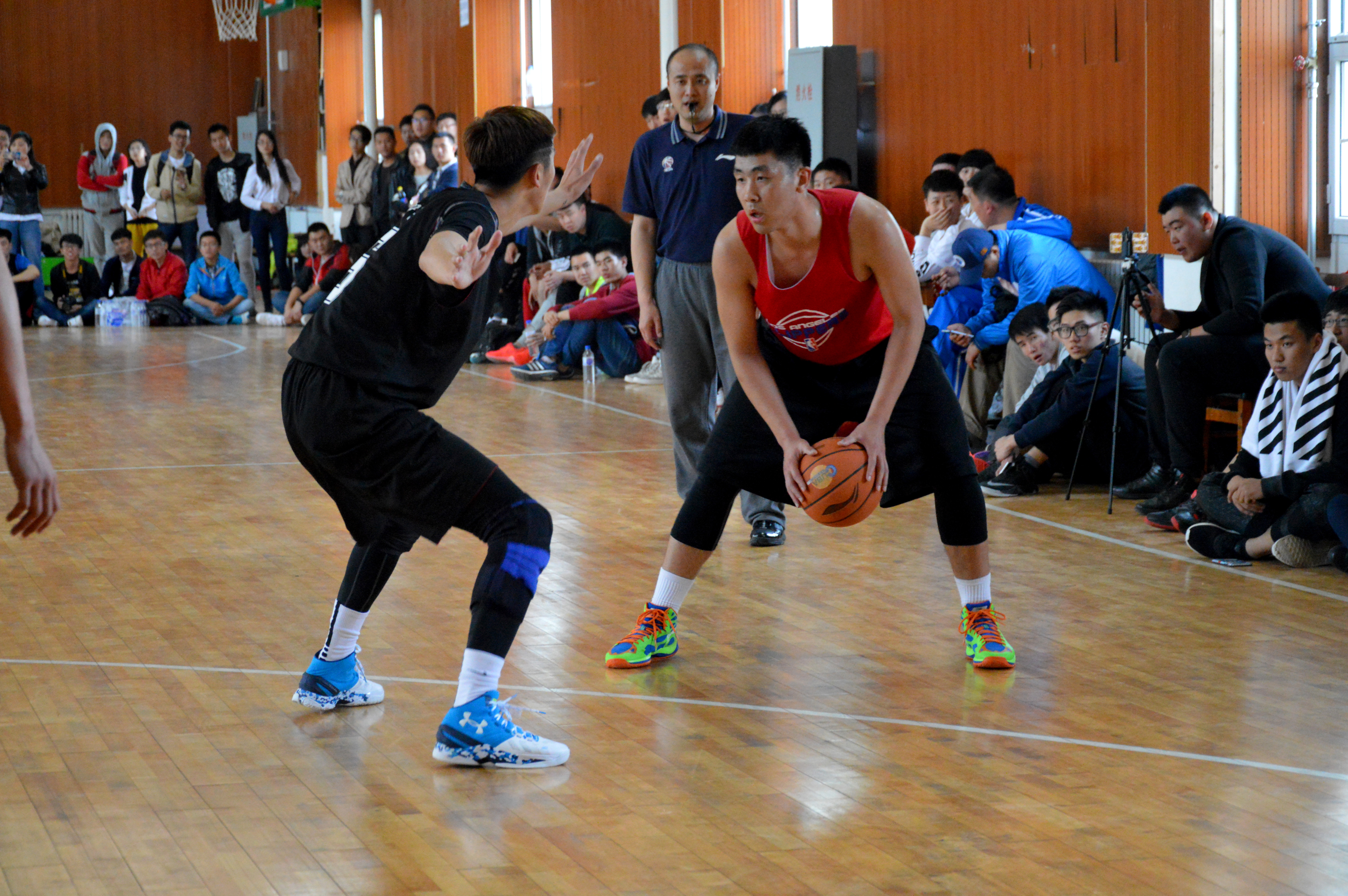 经过两个周末的比赛,yl23455永利代表队从小组赛、淘汰赛一路过关斩将,最终杀入决赛。yl23455永利院系杯总决赛于5月15日在中心校区基础园篮球馆正式开赛。yl23455永利首发阵容为2012级的李金阳、任球璐、关振岩和2015级的于海洋、王贺冉。