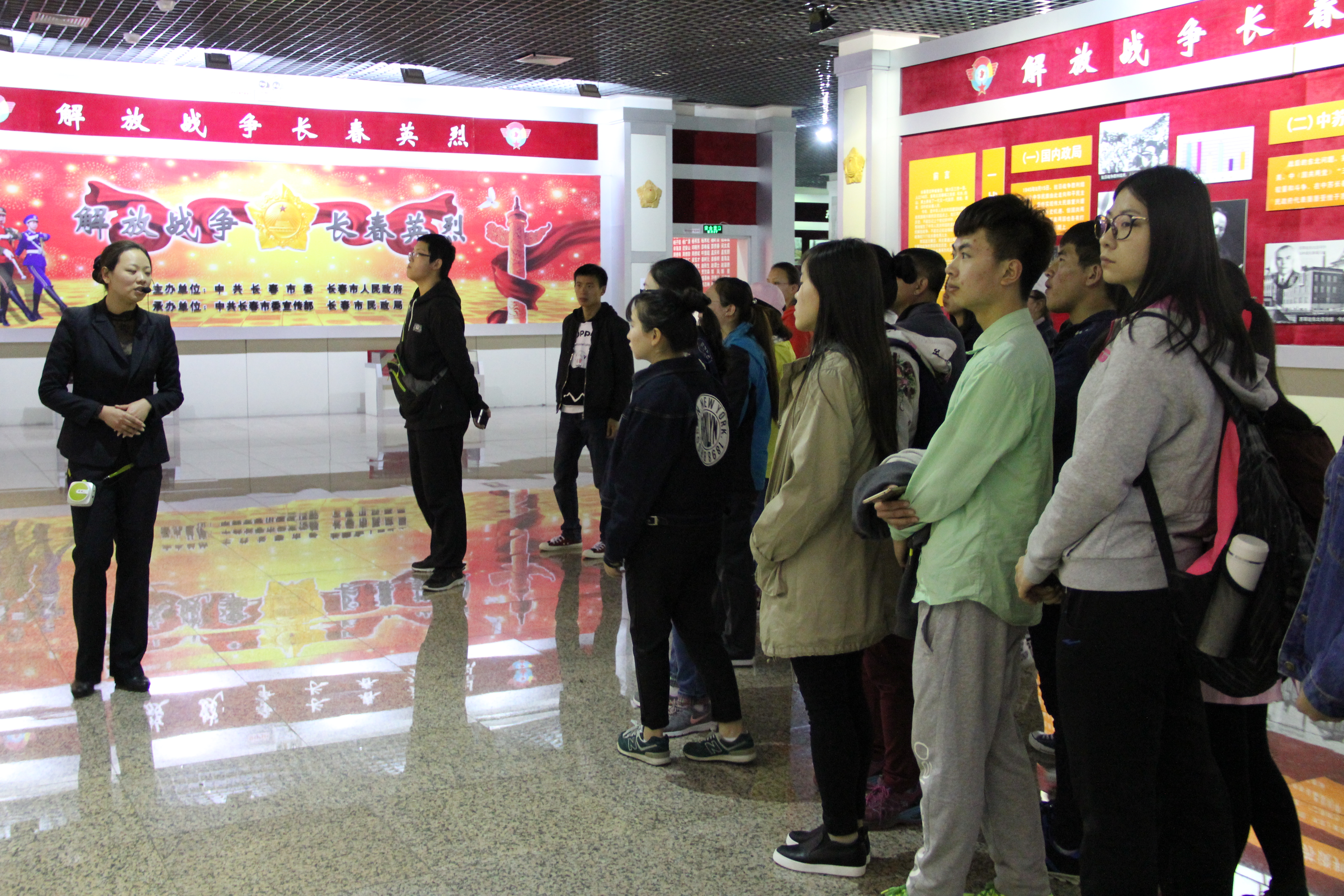 在长春纪念馆中,一班同学在讲解员的帮助下,参观学习了展出的长春市革命英雄的图片、油画、了解了烈士们的生平事迹。同学们在各种珍贵的文物中感受着先辈们的伟大精神,学习中国共产党走过的不寻常的历史过程。