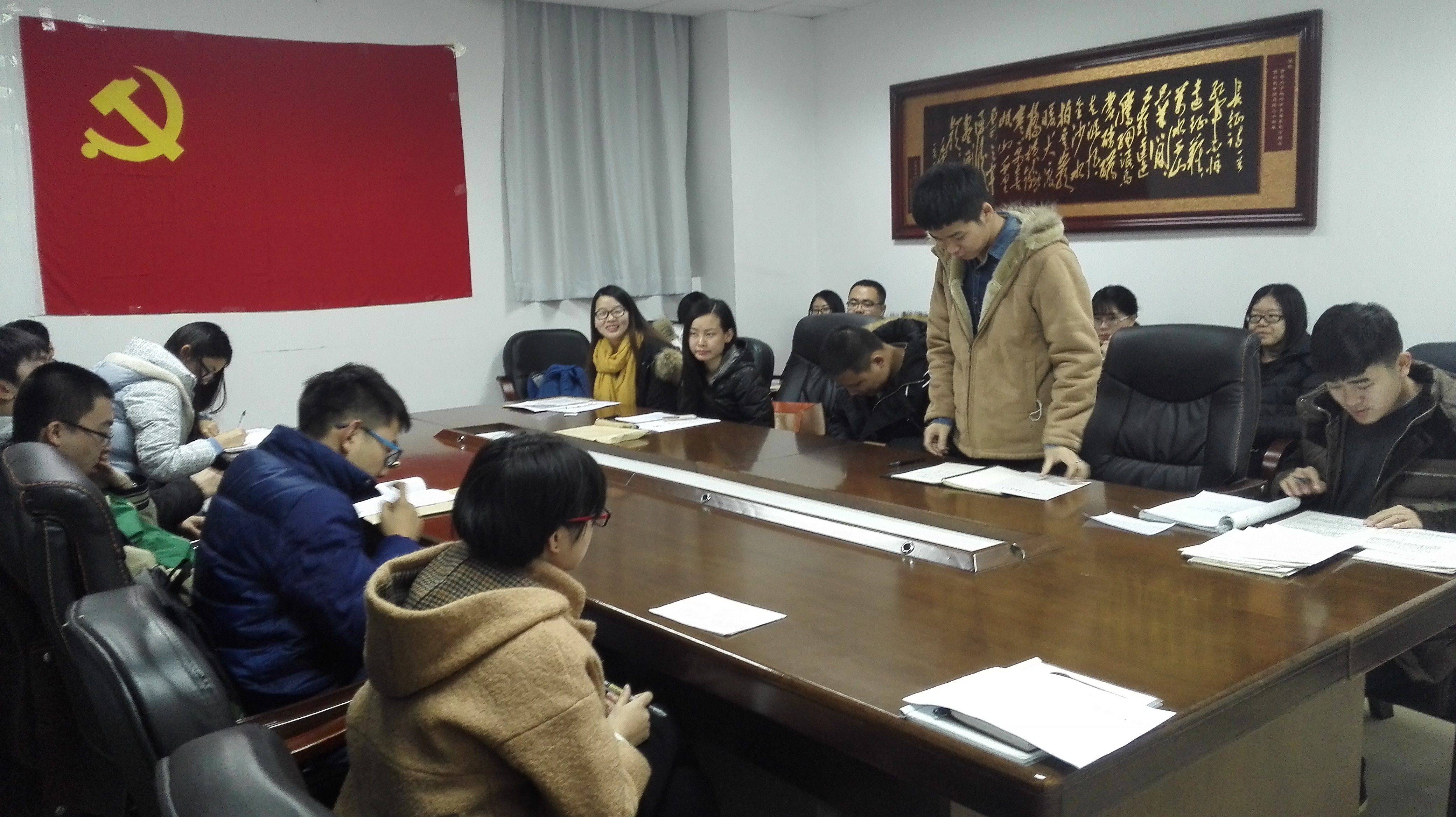 为讨论决定20位本科生的入党问题、进行入党宣誓,yl23455永利本科生第一党支部于11月20日在前卫南区东荣大厦1202室召开了党支部会议。本科生辅导员曲畅竹出席本次会议。yl23455永利本科生第一党支部副书记任建国(2013级)担任主持。yl23455永利本科生第一党支部全体成员参加了此次会议。