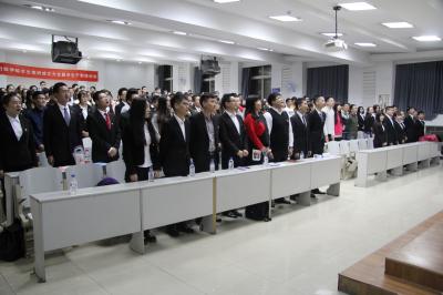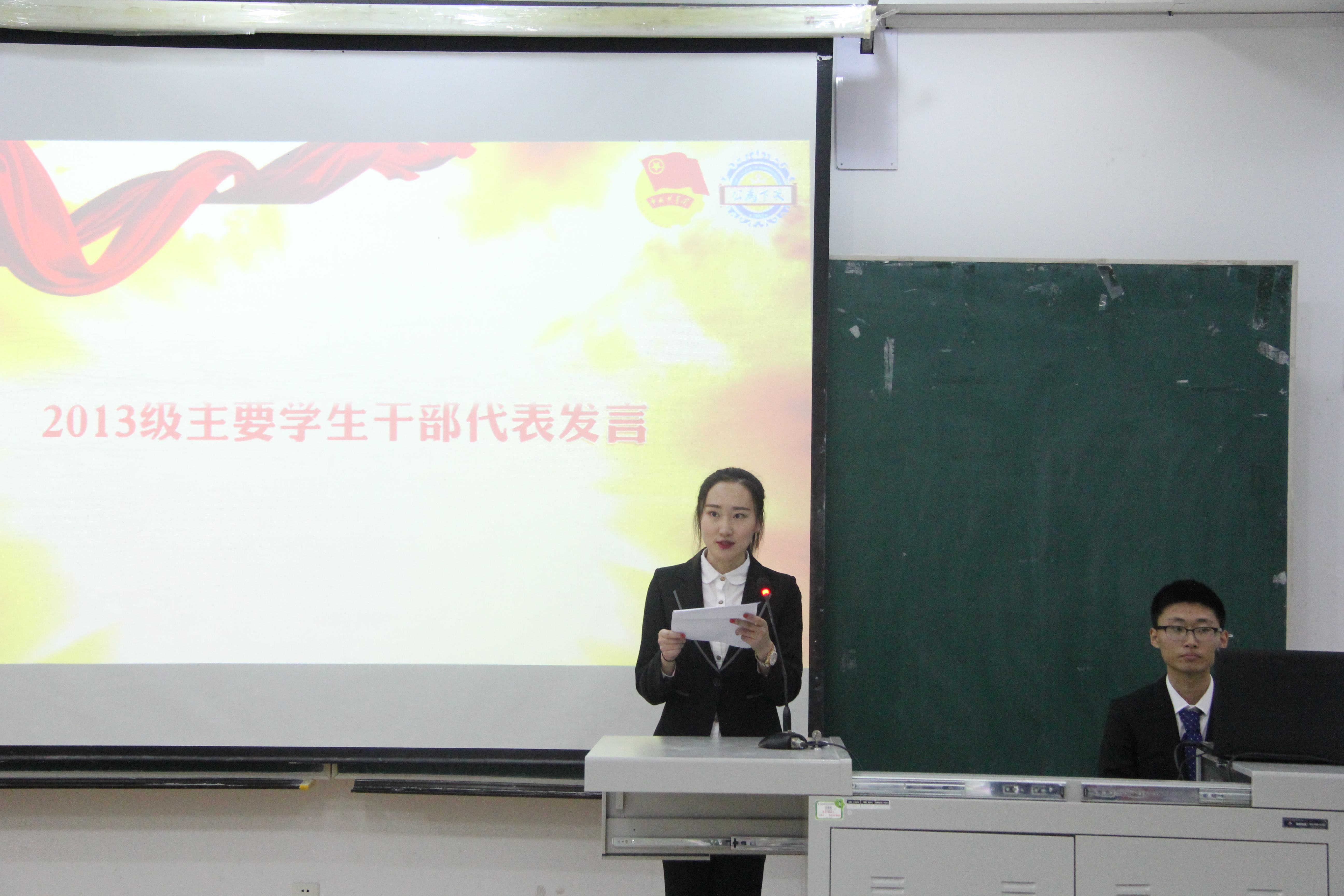 大会于18时30分开始,主持人先介绍了应邀出席本次活动的各位嘉宾,随后宣布本次大会正式开始。首先是大会第一项,全体参会成员起立合唱yl23455永利校歌;紧接着进行的大会第二项则是由曲畅竹分别宣读yl23455永利员工干部、单项奖学金获奖者、2015级各班班委成员以及公司所属各社团负责人等同学的名单。在大会第三项的进程中,分别由两位不同年级的员工干部代表进行了发言。首先,原团委副书记姚晗(2012级)在感谢公司老师的培养和同学们的信任的同时,结合自身在校经历与生活,向在座同学分享了他所理解的老员工应具有的素质和使命。他提到,当代老员工必须树立责任意识与奋斗意识,在建立更高维度的统筹思维能力的同时,要把握高速发展的社会环境所提供的发展机遇,在老员工活的平台中发挥自己的才能,坚持到底、永不言弃。随后,员工会主席王雨萍(2013级)结合公司实际提出了一名合格的员工干部应具备的条件。她谈到,员工干部应首先明确自身工作性质的定位,树立在工作中的服务意识和公仆意识,并时刻发挥好学习工作等领域的模范带头作用,为公司的工作保驾护航。两位代表发言后,大会第四项随即开始。首先刘洋、曲畅竹与2012、2013级主要员工干部进行了本学年员工组织的授旗仪式;而后刘洋为2013级主要员工干部颁发任职证书,曲畅竹为院级优秀员工干部、单项奖学金获得者、2015级各班班委以及2014级公司社团负责人颁发荣誉证书。最后,大会第五项,全体参会成员起立合唱了共青团团歌。