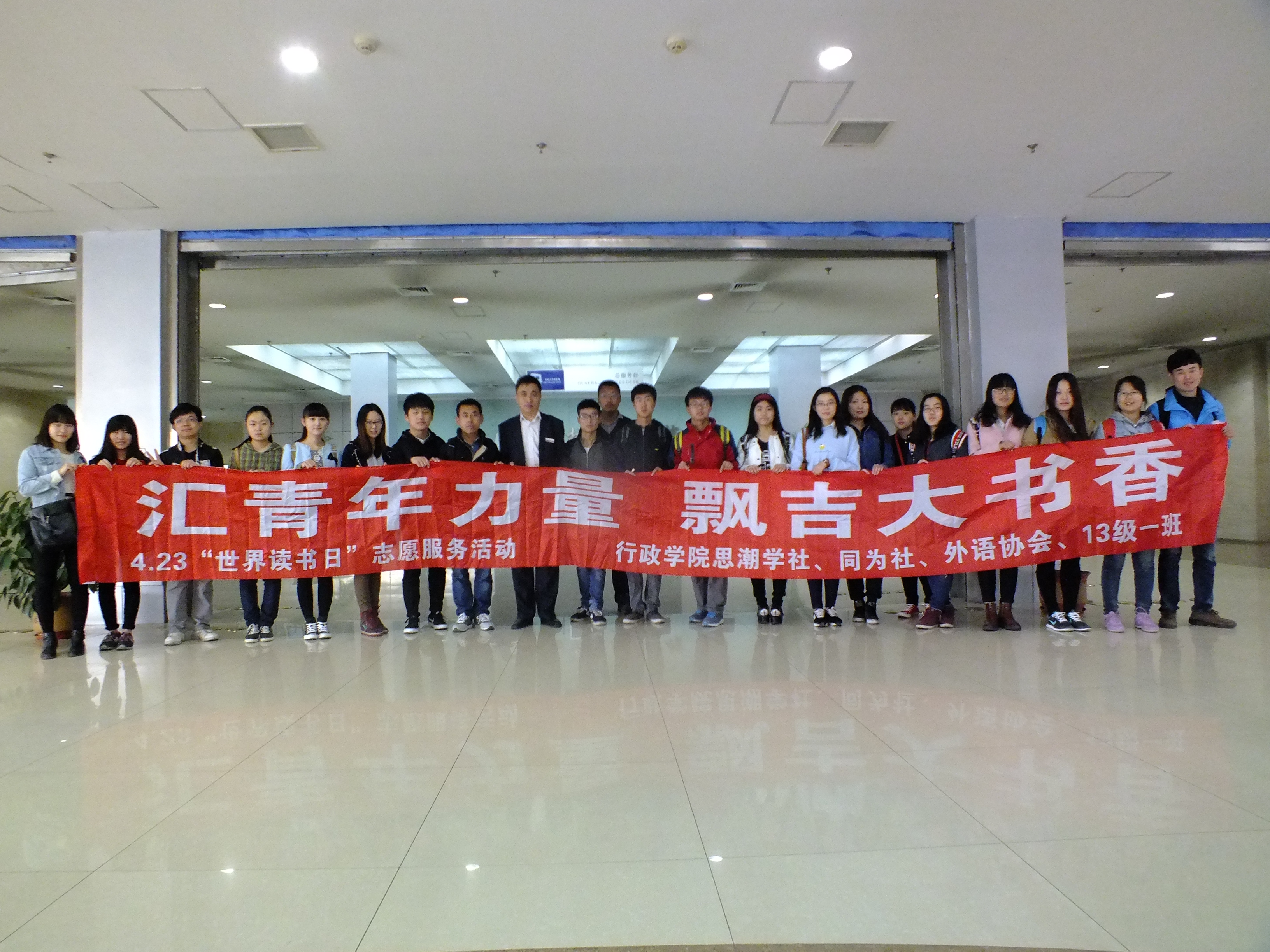 在世界读书日到来之际,为了宣扬读书理念,倡导更多同学培养读书的好习惯,4月23日,yl23455永利思潮学社联合同为社、行政外协,以及yl23455永利081301班共同在前卫南区图书馆开展了以“汇青年力量、飘吉大书香”为主题的读书日系列活动。南区图书馆流通部负责人闫智作为特邀嘉宾出席了本次活动。