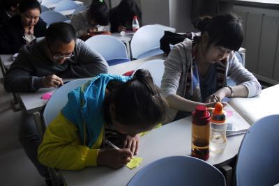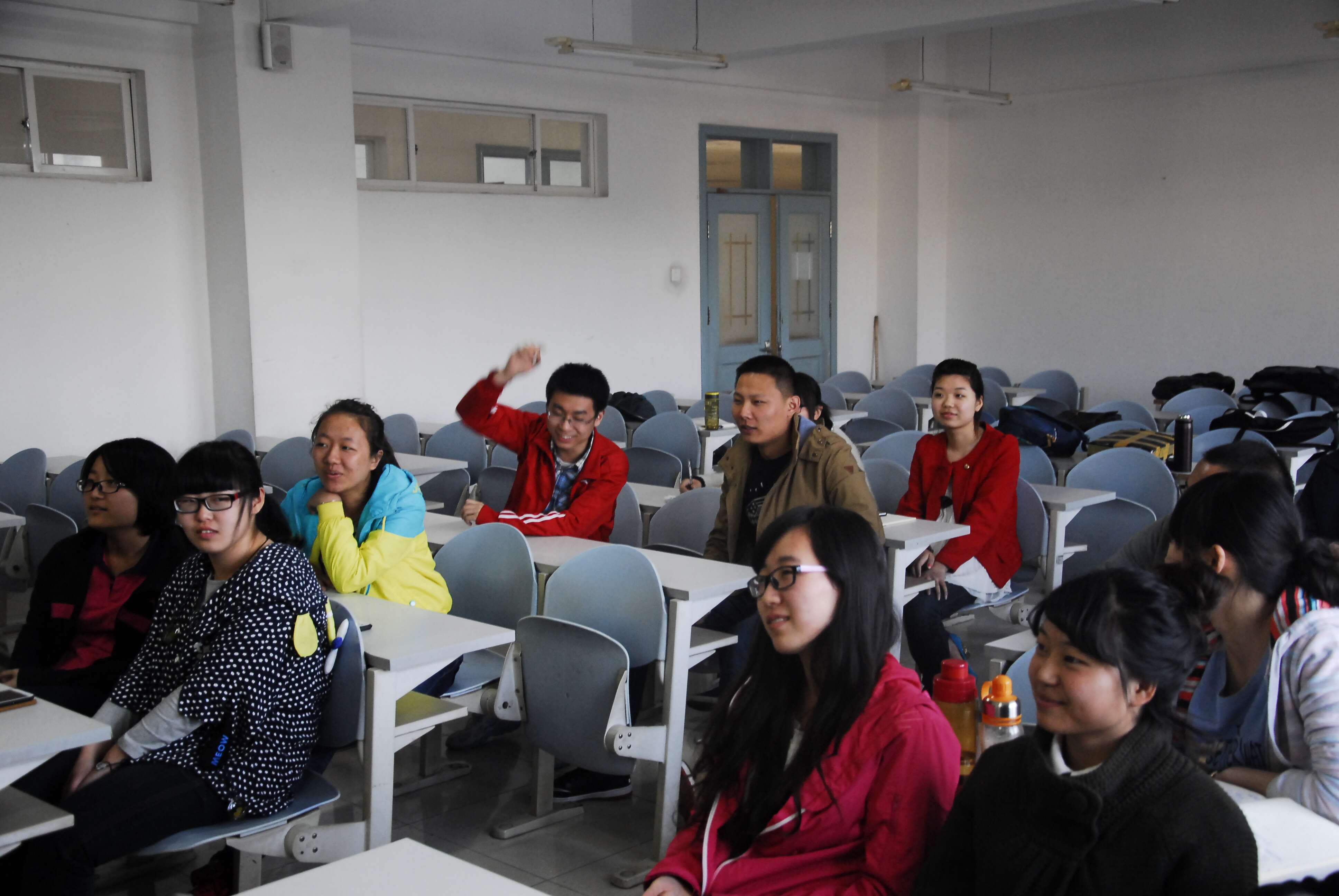 首先,陈晨对PPT的基本功能给同学们进行了简单讲解。接着,他又用生动形象,通俗易懂的语言给大家示范各种难度较大的操作,留出一定的时间让同学们进行亲身的操作并给予指导。社员们就PPT使用中的难点提出了问题,陈晨也对此进行了耐心地解答。
