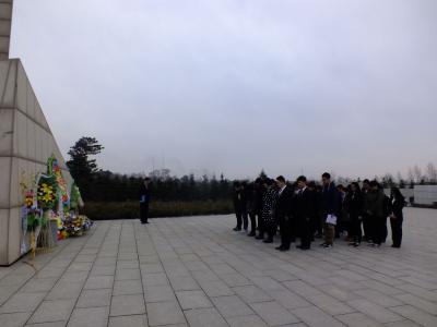 纪念仪式结束后,全体人员共同参观了长春革命烈士纪念馆。馆内分为解放战争和抗美援朝战争两部分,以图片和实物的形式生动地向同学们展示了长春的革命英雄们保家卫国、英勇奋战的场景,纪念馆工作人员的介绍则进一步让大家对长春的革命历史有了深入的了解。11点,参观活动结束,大家合影留念,离开九龙源烈士陵园。