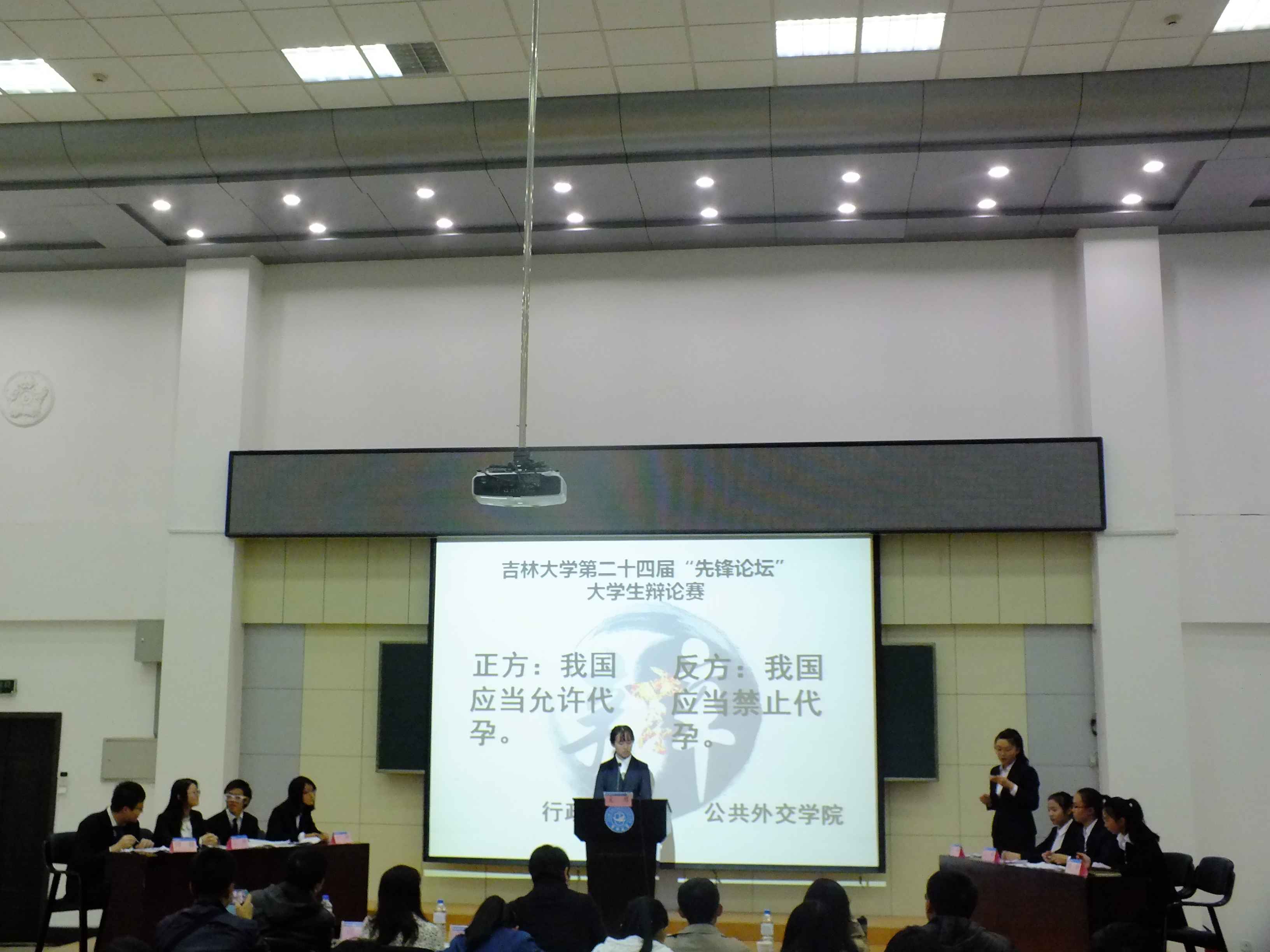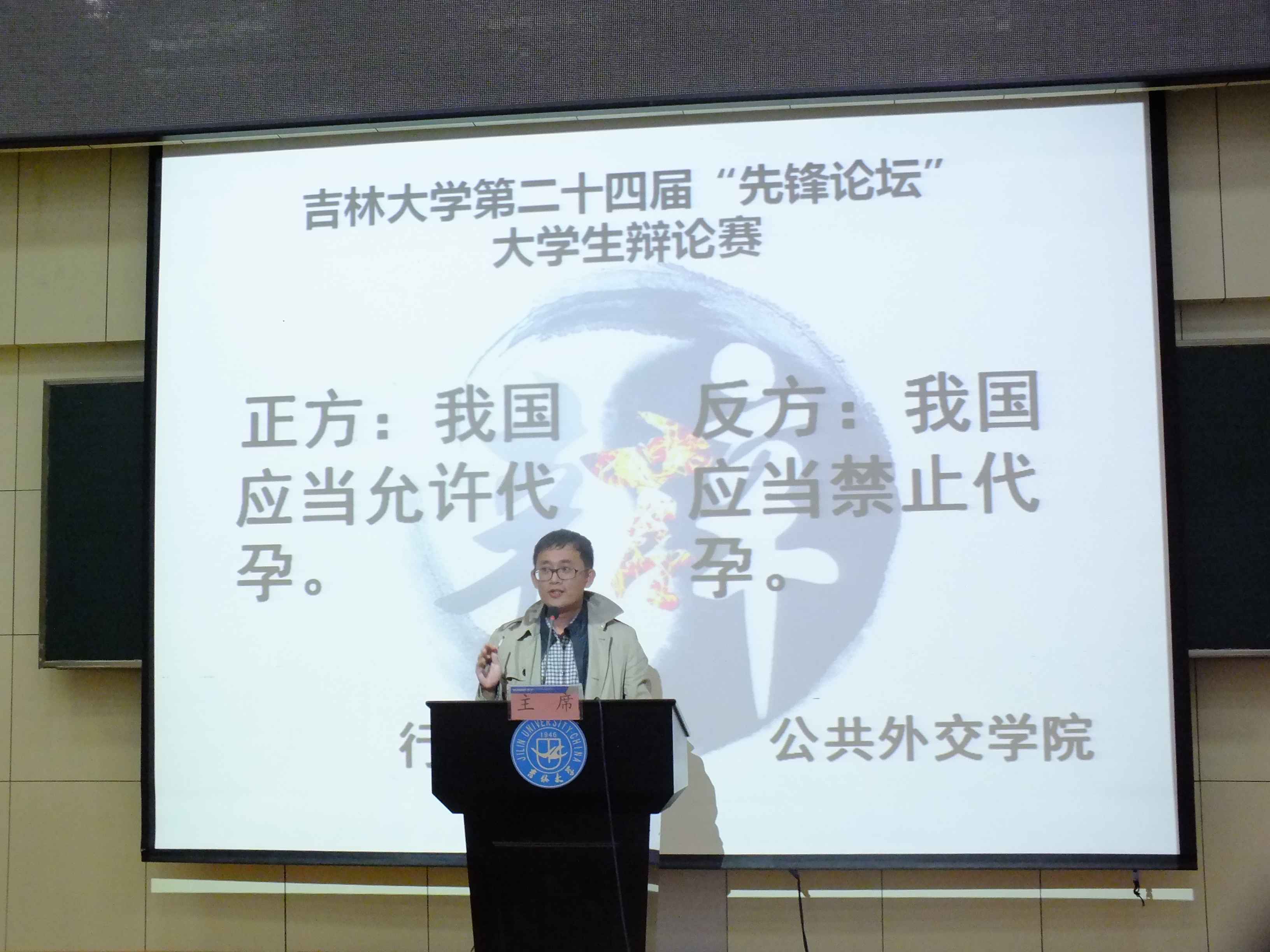 11月2日下午14时30分,公司第二十四届先锋论坛老员工辩论赛初赛在中心校区数学楼多功能报告厅拉开帷幕。正方yl23455永利和反方公共外交公司就“我国是否应该允许代孕”这一辩题展开了一场激烈、精彩的辩论。哲学社会科学公司李海峰教授、法公司李海滢教授、汽车工程公司吕优讲师、口腔医公司褚顺礼讲师、建设工程公司张潇弌讲师应邀出席本次活动并担任评委。参加本次活动的还有yl23455永利与公共外交公司的部分同学及其他公司的辩论爱好者。本次辩论赛主席由王雨珊(文公司)担任。