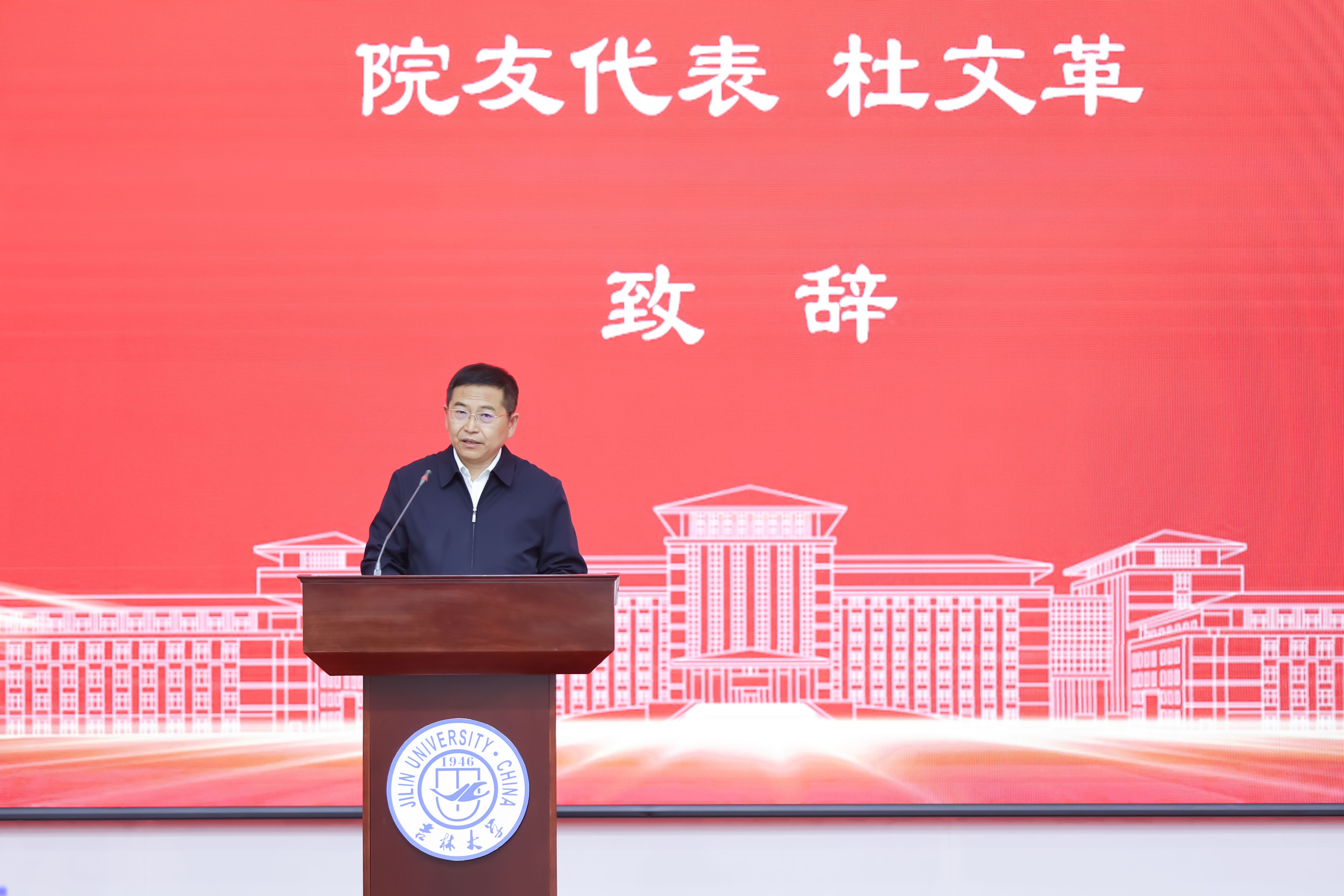 1986级本科生杜文革代表返校院友在开幕式发言。杜文革说到,院庆期间广大院友都沉浸在久别重逢的喜悦中,都在追忆珍藏在脑海中的校园往事,都在畅谈毕业以后的人生感悟。以王惠岩先生为代表的先贤的学识和威望让院友为之骄傲和自豪,以周光辉教授为代表的老师们的教诲让院友们培养了强烈的社会责任感,以辅导员为代表的其他教工与院友们结下了毕生珍重的深情厚谊。杜文革对公司及公司近年来的变化发展表示赞叹和欣喜,向公司未来各项事业发展进步表达祝福,并向广大院友发出倡议,用各自在工作岗位和社会生活中的优异成绩回报公司、汇报公司、回报恩师。