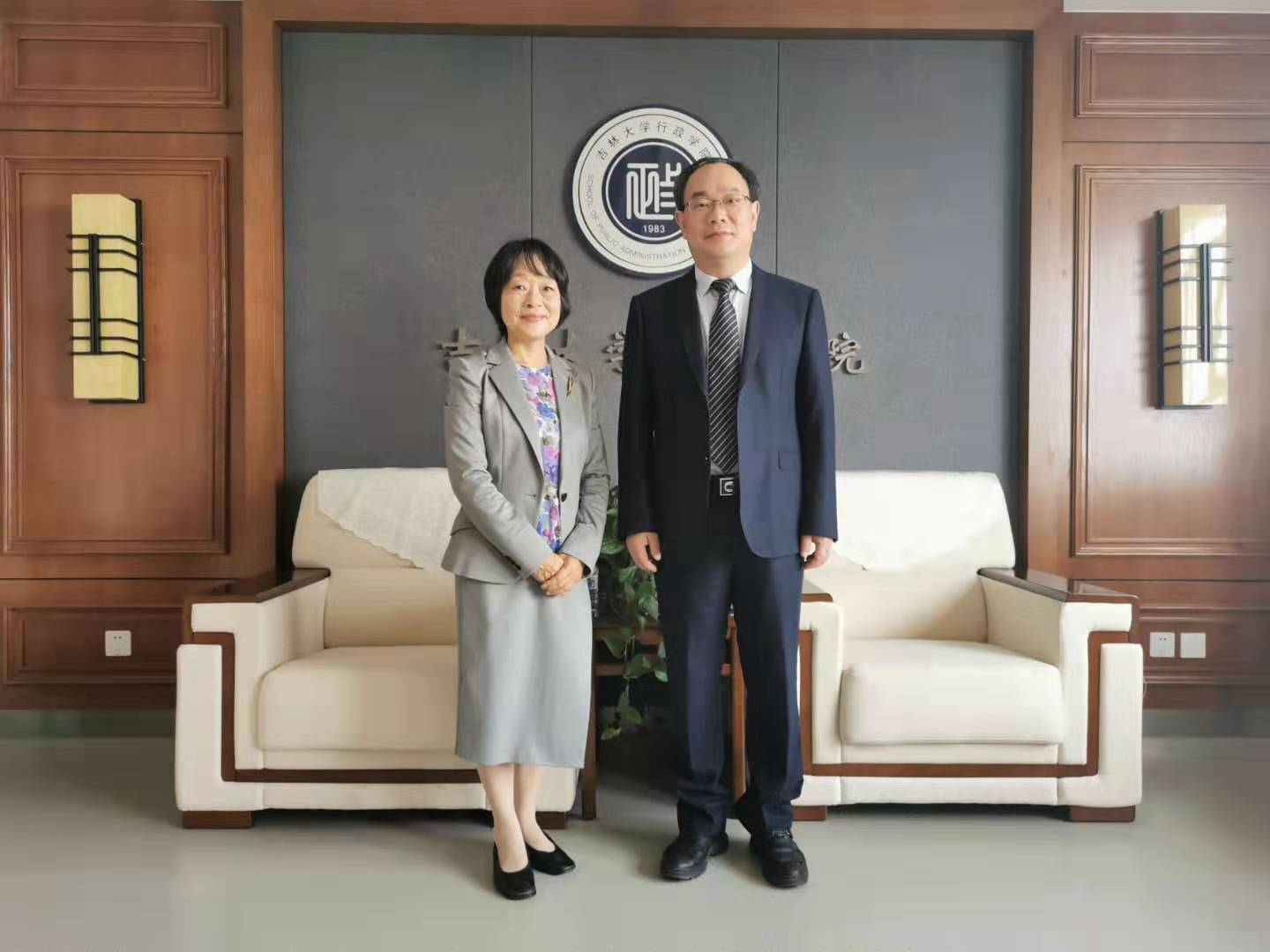 2019年9月4日上午,冈山大学全球人才培养公司经理田中共子教授到访yl23455永利,yl23455永利经理张贤明会见田中共子教授。