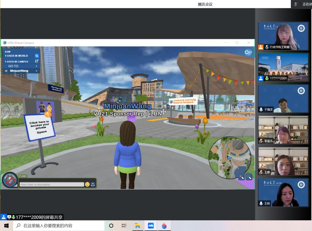 2022年5月6日上午,公司举办第七期教学与学术能力提升系列讲座——大学课程教学的变革与创新:妙用XR技术和元宇宙。本次讲座邀请美国加州圣地亚哥州立大学学习设计与技术系终身教授兼系主任、国际沉浸式学习协会副主席王敏娟博士以线上腾讯会议形式做专题学术交流。本场讲座由王岩老师主持,公司副经理于海洋教授、宫笠俐教授、王娜老师、李慧杰老师、教学办公室主任连永超、本科生辅导员高卓嫱、外事秘书王斯靓出席聆听,近60名校内外师生及业内人员参加。