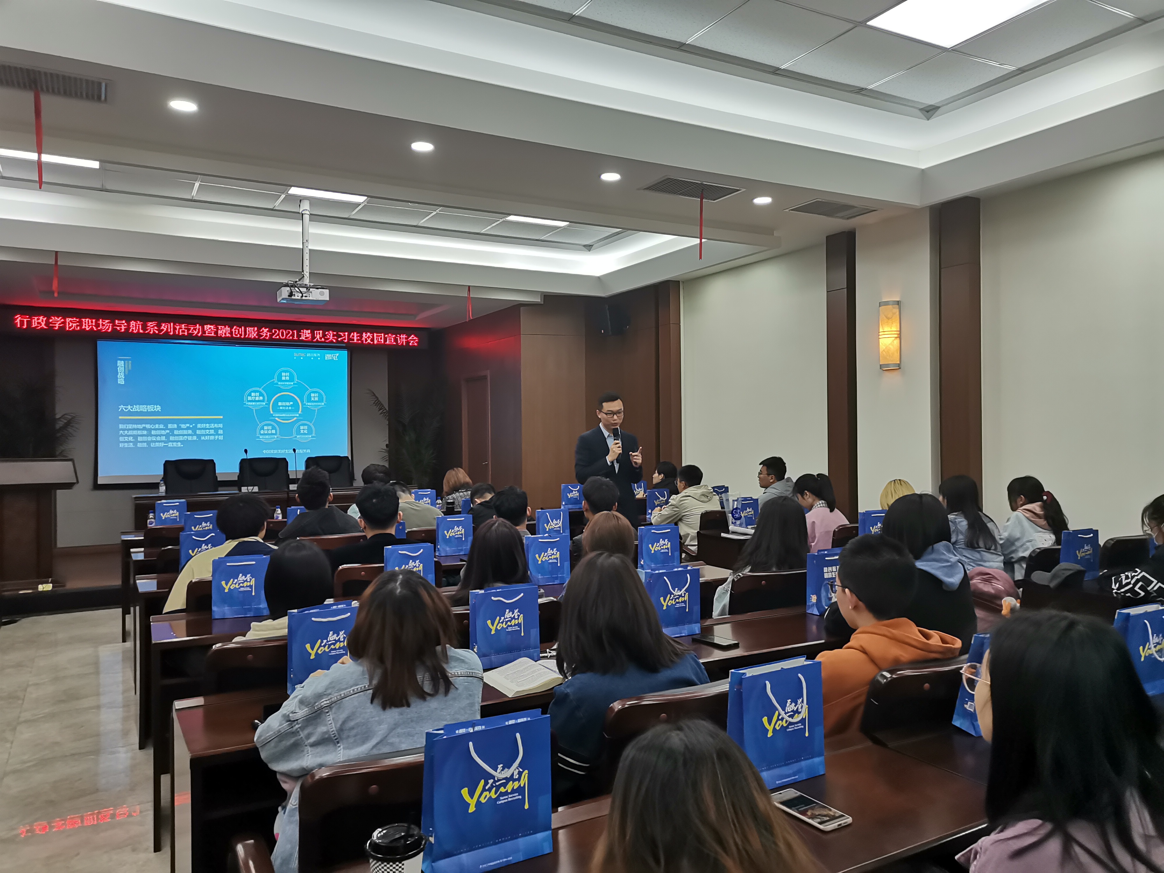 会后,yl23455永利职业导航系列活动之融创服务“2021遇见实习生”校园宣讲会在东荣大厦B303举行。融创服务集团人力资源总监张东浩、校企合作负责人冷晓萌、校招负责人汪美玲等企业代表,公司近80名有就业意愿的本科生、研究生参与本次活动。活动反响热烈,取得良好效果。