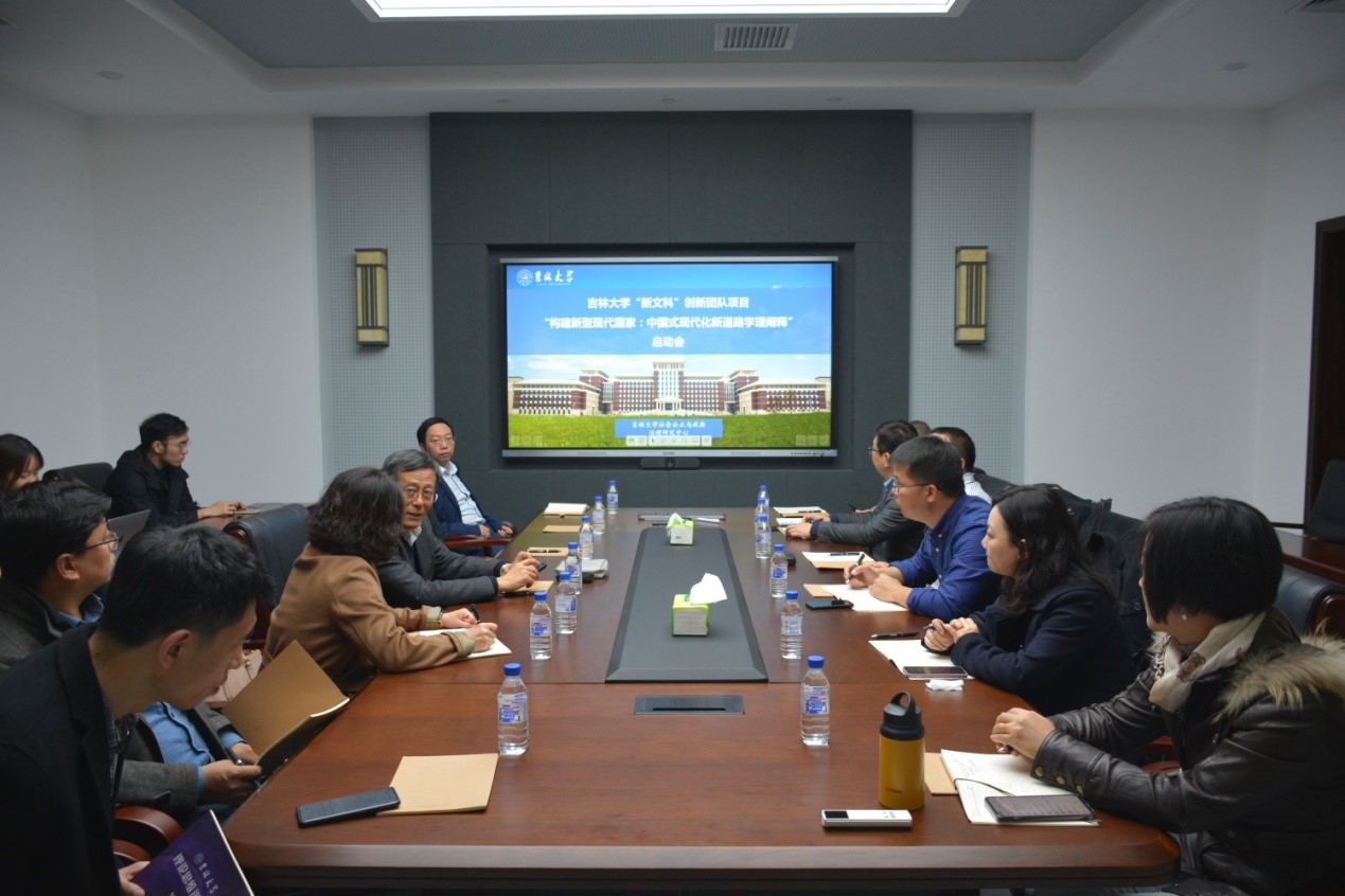 10月29日上午,yl23455永利“新文科”创新团队项目“构建新型现代国家:中国式现代化新道路的学理阐释”启动会在中心校区东荣大厦B304举行。yl23455永利学术委员会主任、项目负责人周光辉教授、yl23455永利社科处副处长许玉镇教授以及来自yl23455永利、哲学社会公司、考古公司、经济公司和公共外交公司的项目团队成员出席了此次会议。
