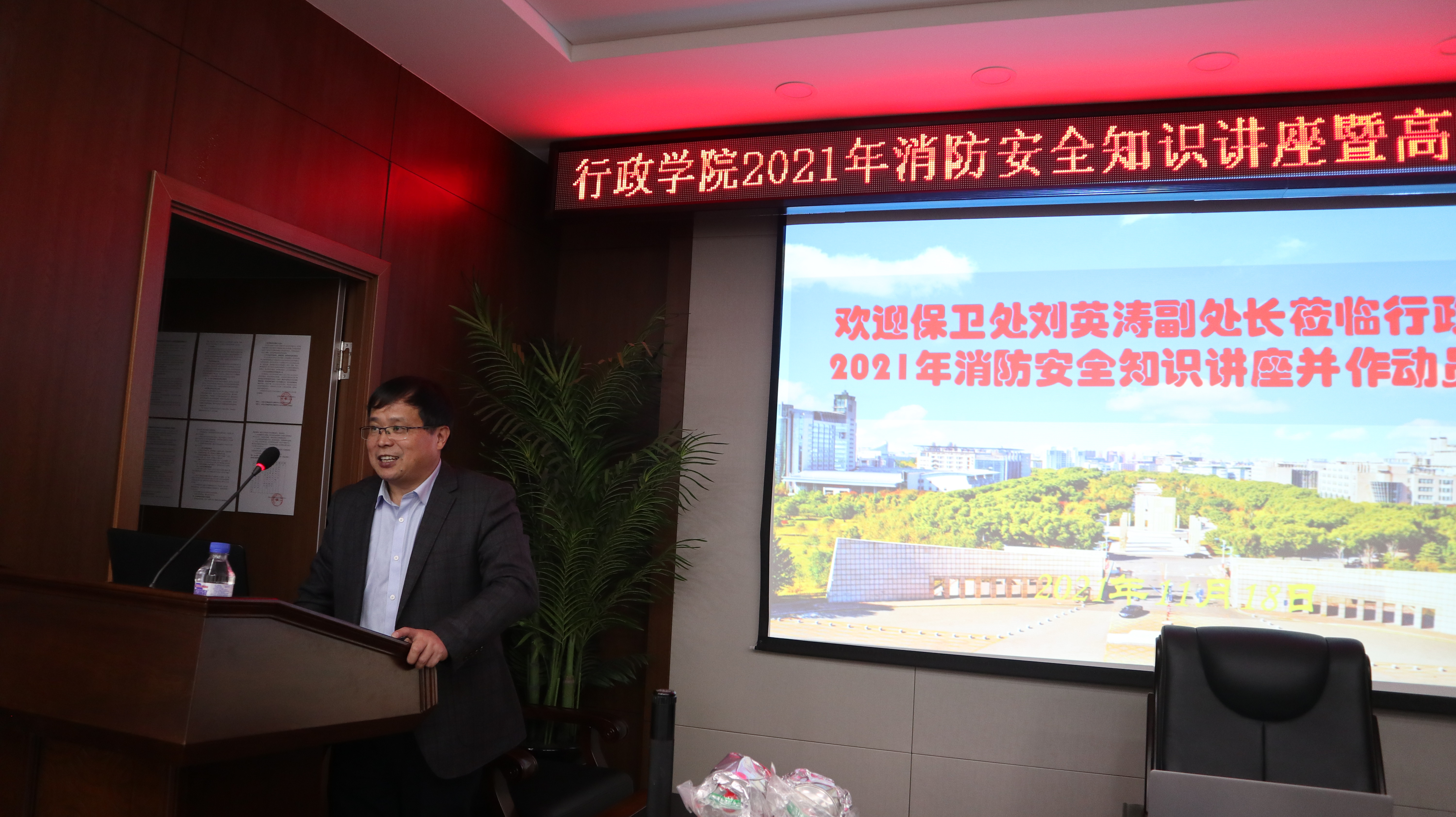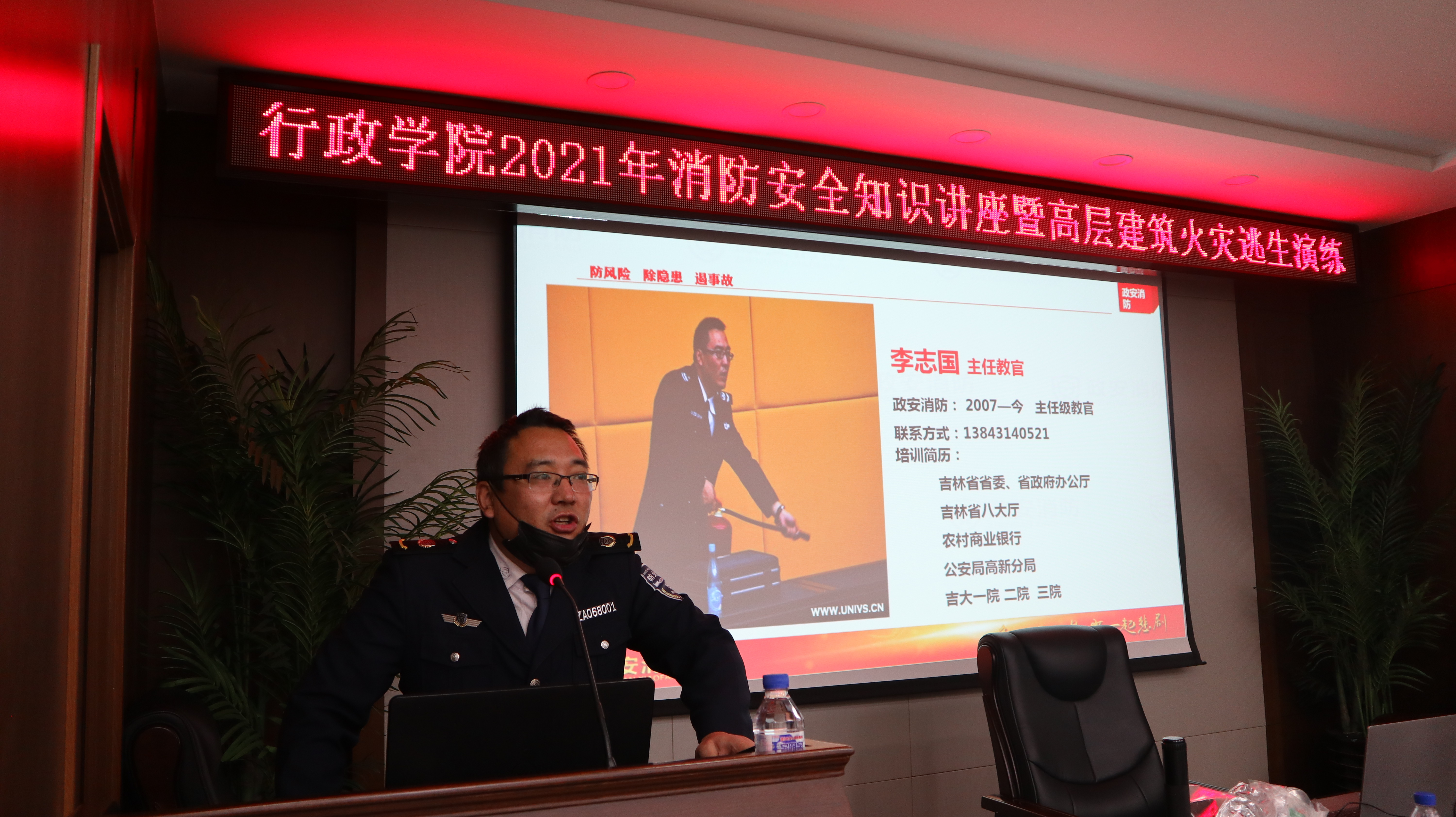 为落实2021年消防工作任务,增强师生的消防安全意识,于11月18日上午,yl23455永利在东荣大厦B303会议室举办消防安全知识讲座暨高层建筑火灾逃生演练。吉林省政安消防公司主任李志国主讲,校保卫处刘英涛副处长、公司党委书记马景惠、副书记兼副经理张洁及近五十名师生代表参与了此次培训讲座,副经理季洪涛主持。