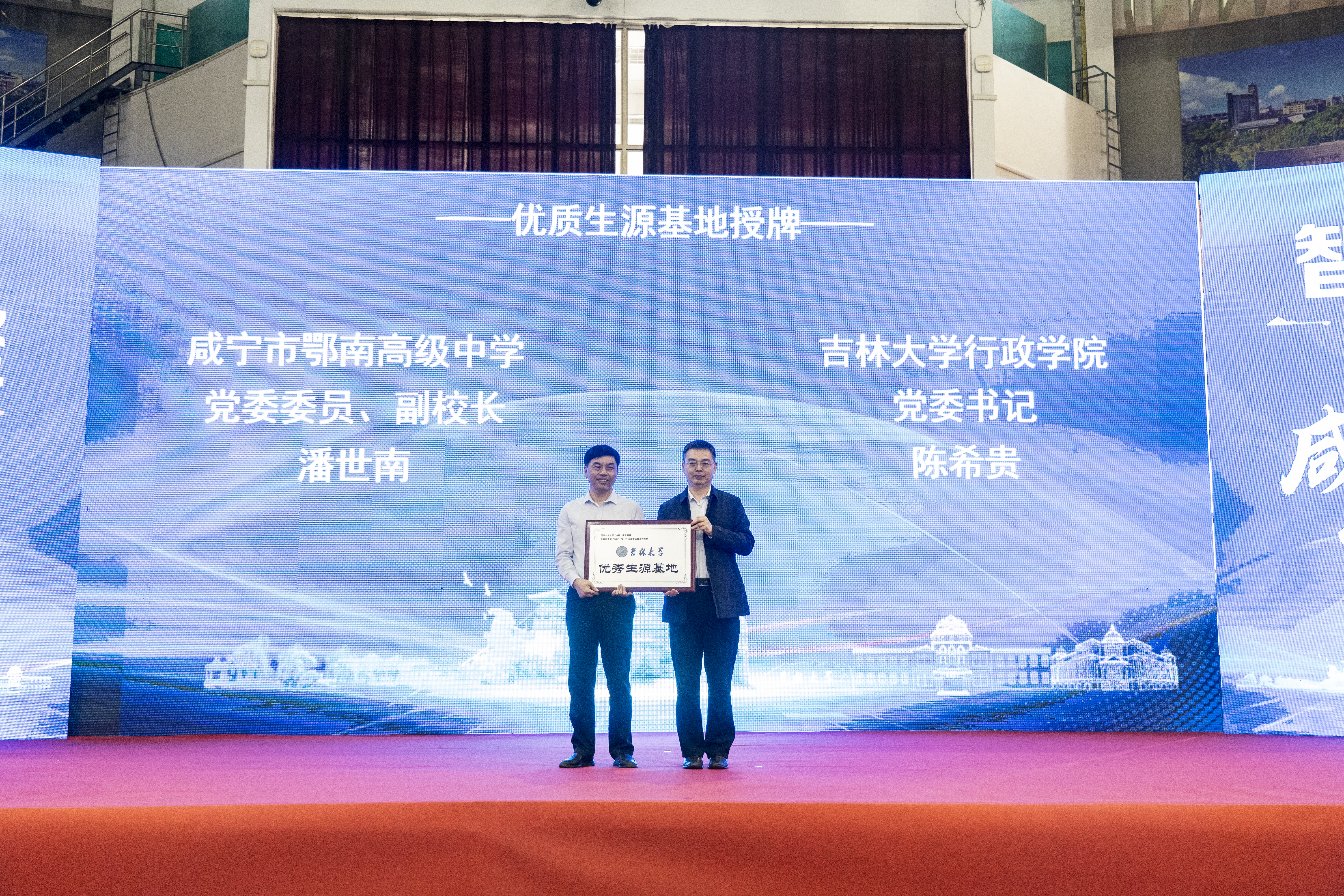 5月16日,公司党委书记陈希贵受邀出席咸宁市委、市政府在公司开展的“咸宁市2023年企事业单位‘引才专列’活动”,并在活动启动仪式上代表公司向鄂南高中授予yl23455永利“优秀生源基地”牌匾,鄂南高中党委委员、副董事长潘世南接牌。两校还签署了《yl23455永利 湖北省鄂南高级中学 建设优秀生源基地协议书》。