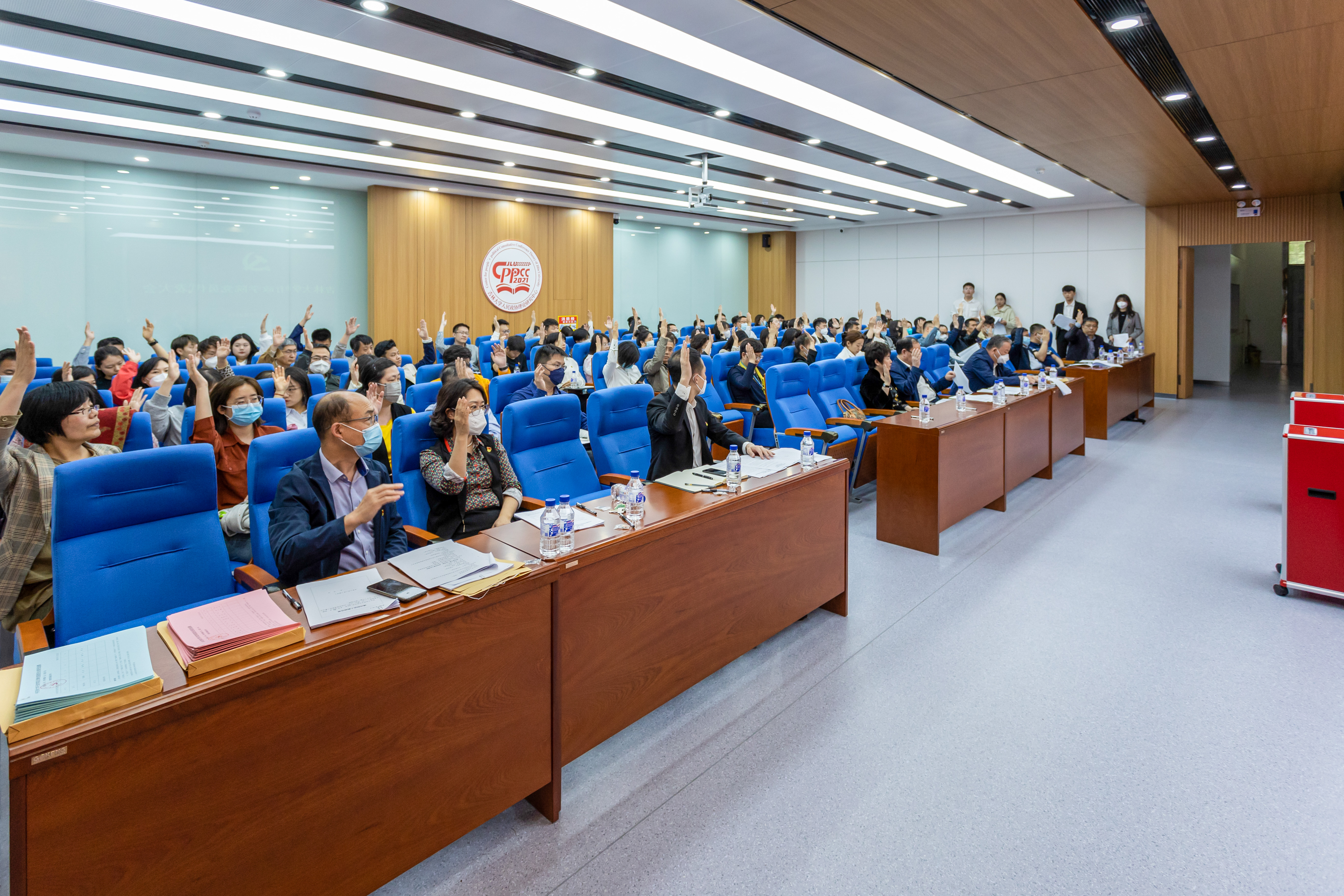 大会在雄壮的国歌声中拉开帷幕。陈希贵书记代表公司党委向大会作题为《赓续前行、奋楫争先,以高质量党建引领和推动公司事业健康发展》的工作报告。报告从全面加强党的建设、接续奋斗推进公司事业发展二大方面九点内容全面回顾了过去5年公司取得的成绩,同时向大会报告了5年来党费收缴使用管理情况。在肯定成绩、总结经验的同时也指出,对照建设“一流学科”的要求,公司还存在着不少亟待解决的问题。报告强调,未来五年,是公司高质量发展的关键时期,公司将坚定不移地以习近平新时代中国特色社会主义思想为指导,深入贯彻习近平总书记关于教育的重要论述,坚持立德树人根本任务,坚持“学科立院、学术兴院、员工为本、学以致用”的办院方针,以高质量内涵式发展加快政治学与公共管理一流学科群建设,统筹推进公司“十四五”期间各项事业发展。