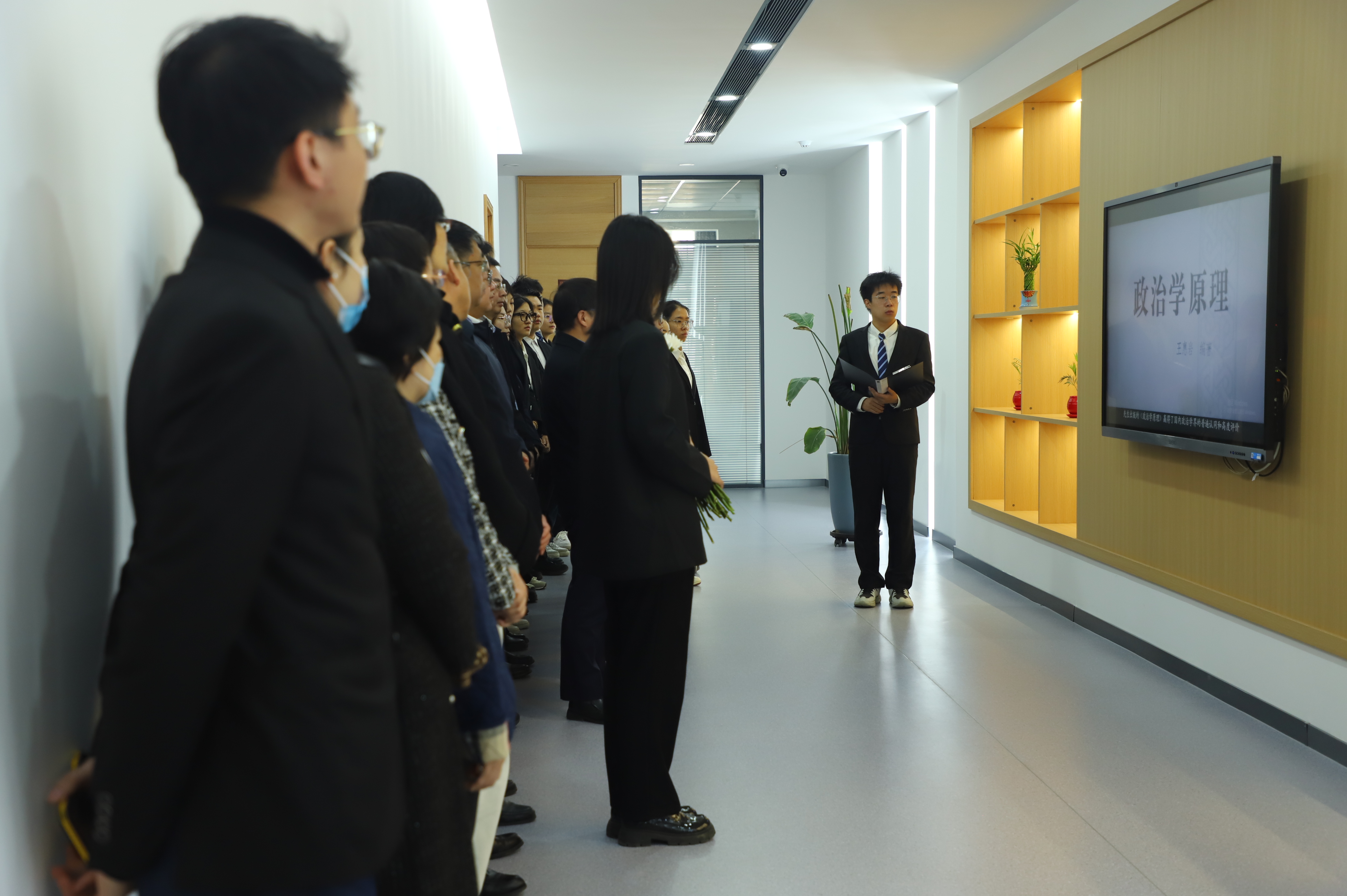 师生们集体观看《惠人育才 志如坚岩—王惠岩生平纪录片》,共同回顾先生对当代中国法学、政治学的发展与繁荣作出卓越贡献的一生。在王惠岩先生雕像前,师生恭默守静,九原可作。员工党员和入党积极分子代表小心而仔细地抚去雕像上的浮尘,党委书记陈希贵与师生们一道依次走进先生雕像并敬献鲜花,并怀着景仰和忧思肃立默哀。