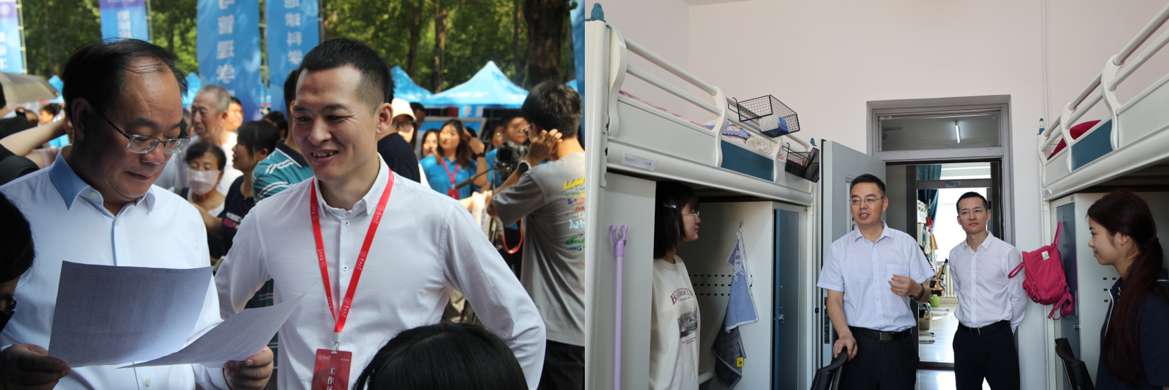 集团领导及相关职能部门负责同志对公司迎新工作给予肯定和大力支持,并在走访期间关心公司发展建设,同恰巧报到的新同学及其家长亲切合影。张贤明详细了解了2024级新生生源情况,向迎新工作人员表示问候。陈希贵逐一走进本科寝室看望新生,交谈间为大家展开了老员工生活的美好图景。