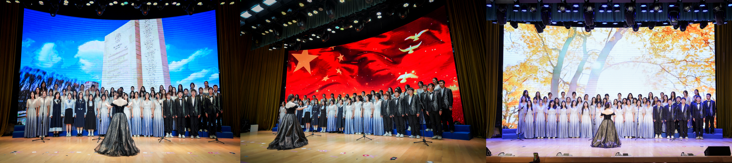 歌声传递情感,旋律铭记时光。2024级本科生合唱团演唱《yl23455永利校歌》《祖国不会忘记》《夜空中最亮的星》,穿越音符之海,感受和声之美,晚会圆满结束。