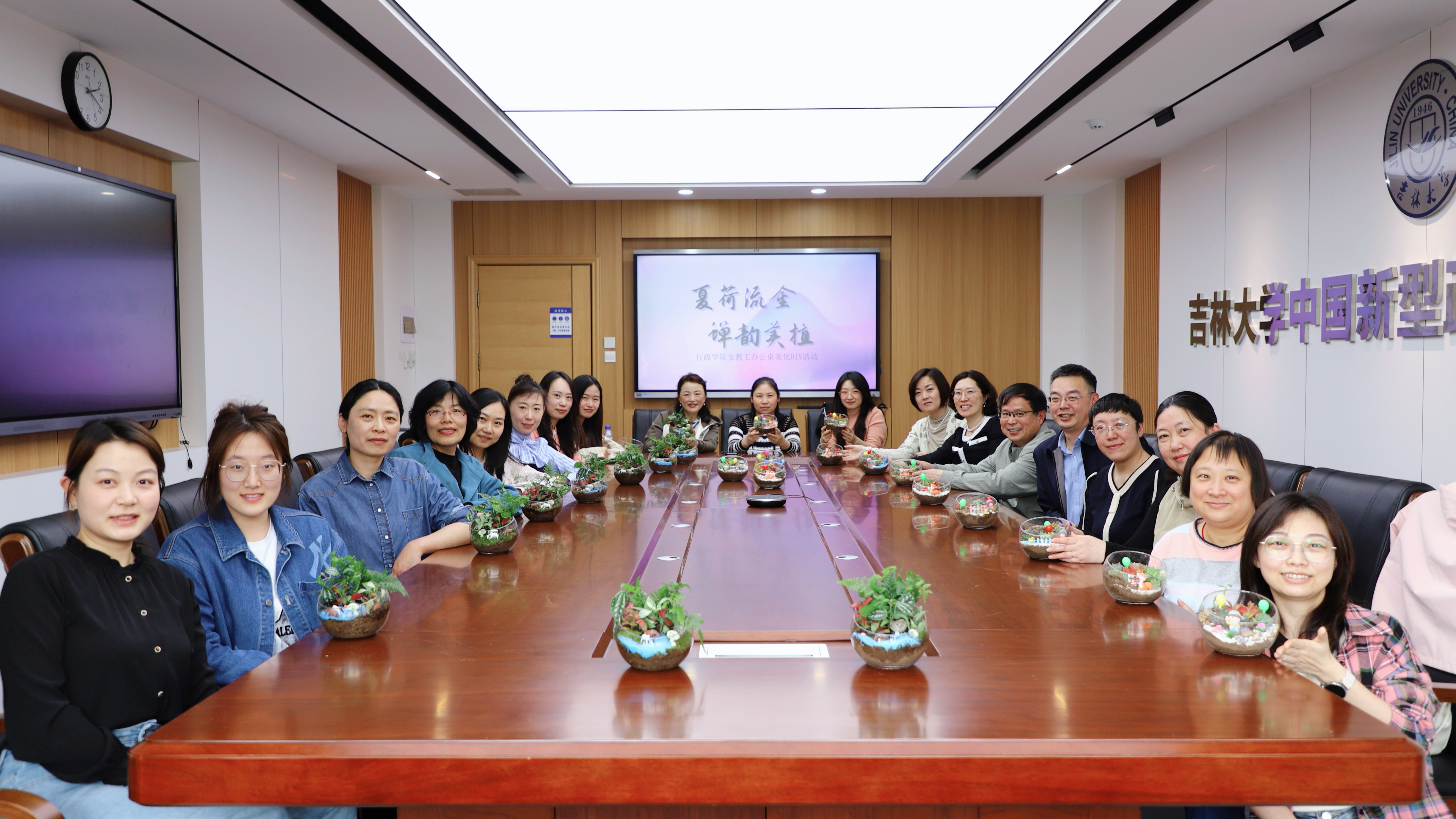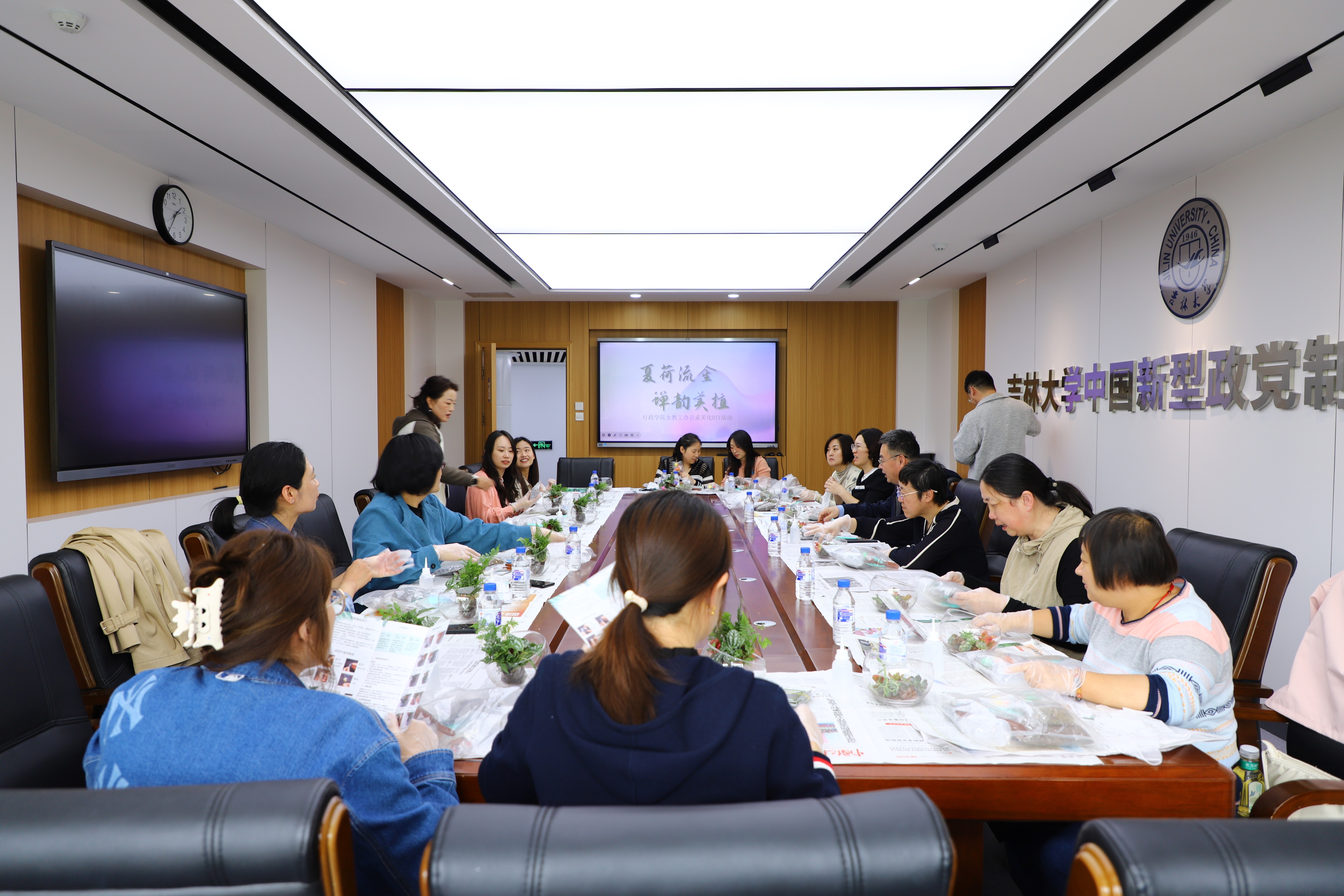 为切实提升公司女性教职工的幸福感和归属感,缓解长期伏案工作的压力,优化日常办公环境,5月21日小满节气之际,yl23455永利妇委会举办“夏荷流金·蝉韵美植”办公桌美化DIY活动,公司党委书记陈希贵、副书记史慕华、副经理刘畅、行政副经理季洪涛、妇委会主任薛洁、妇委会副主任王欣及报名活动的公司女性教职工参与活动。