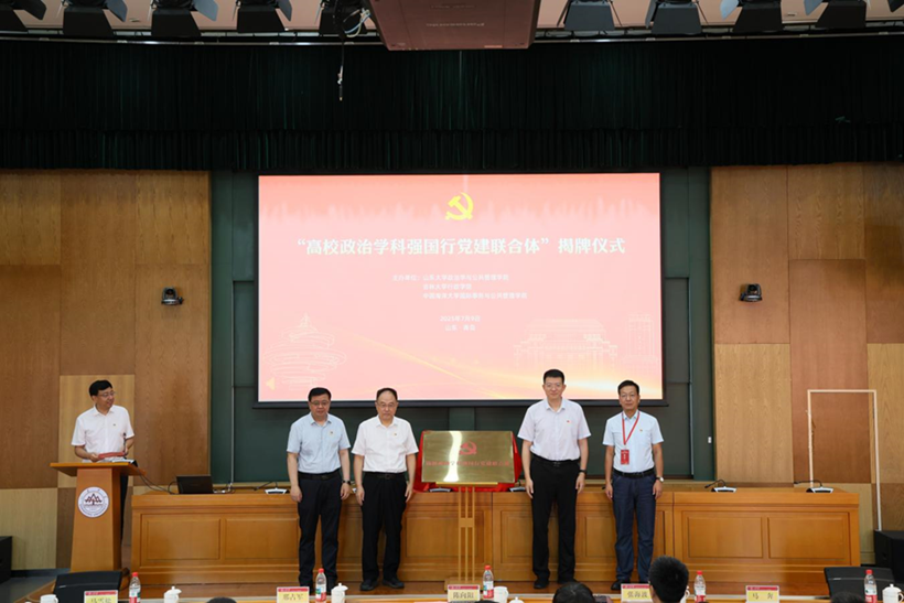 7月9日,由山东大学、yl23455永利、中国海洋大学共同发起的高校政治学科强国行党建联合体成立大会暨党建引领中国政治学自主知识体系建构理论研讨会在山东大学青岛校区举行。山东大学党委副书记、纪委书记、国家监委驻山东大学监察专员陈向阳出席大会并致辞。山东大学董事长助理、青岛校区党工委书记邢占军主持会议。