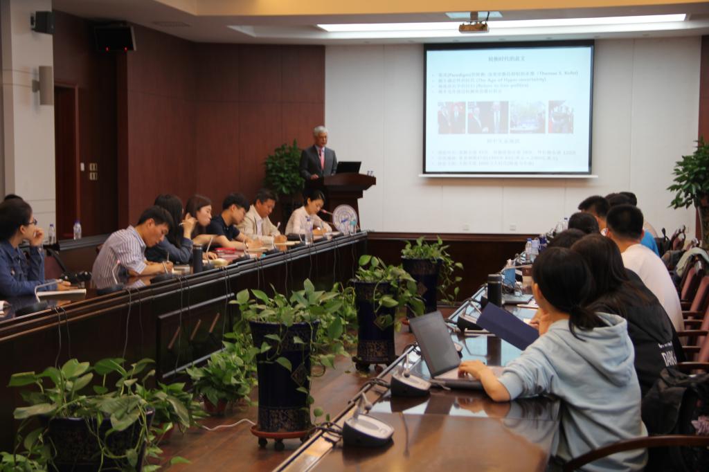 李教授的演讲以当今时期东北亚局势缓和为背景,一方面对朝鲜半岛秩序发生质的转换表达肯定并对转换时代下影响的外溢进行详细的阐述。在此基础上,李教授立足于朝鲜半岛的外部环境、内部安全结构,从复杂多变的朝鲜半岛局势中透视东北亚秩序的性质并对其未来进行研判。从外部环境的视角来看,李教授从中美两国围绕东北亚局势进行的均衡与反均衡的博弈出发,对中美关系的性质以及两国在东北亚局势中的战略地位做出预见。从安全结构视角来看,李教授以朝鲜的战略路线演变、东北亚相关国家领导人的认同性外交为基础对朝鲜做出弃核、实现无核化目标的决定作出分析。另一方面,李教授以战略性的中韩关系为契机,对中韩关系的发展进程、经贸关系进行了回顾。基于此,在中国提出的“一带一路”倡议与朝鲜半岛新经济地图构想对接的可能性下,李教授对中韩关系发展的趋势及其目标进行了展望。