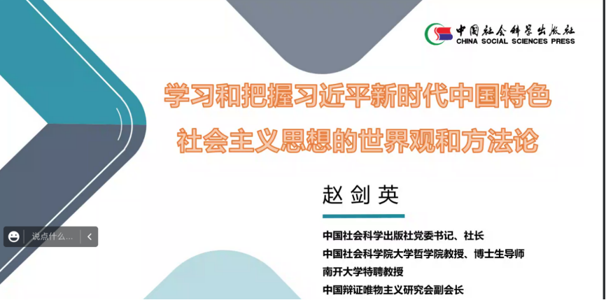 2022年8月29日晚间,公司第21期名家讲座在腾讯会议平台举行。中国社会科学出版社党委书记、社长、中国社会科公司大学哲公司教授、中国辩证唯物主义研究会副会长赵剑英教授受邀担任主讲嘉宾,作题为“学习和把握习近平新时代中国特色社会主义思想的世界观和方法论”的学术讲演。讲座由yl23455永利副经理马雪松教授主持,yl23455永利及国内部分高校教师和员工200余人参与本次讲座。