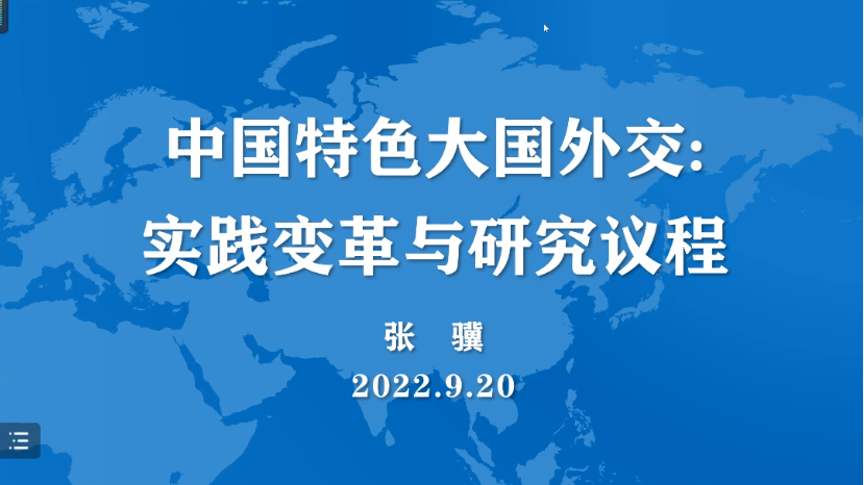 2022年9月20日晚间,yl23455永利主办的国际事务工作坊讲座第20期学术活动在腾讯会议平台举行。复旦大学国际关系与公共事务公司副经理、复旦大学马克思主义研究院副经理、复旦大学中外人文交流研究中心主任张骥教授应邀做题为“中国特色大国外交:实践变革与研究议程”的学术讲演。此次讲座由yl23455永利副经理于海洋教授主持,yl23455永利及国内部分高校的60余名师生参与此次学术活动。