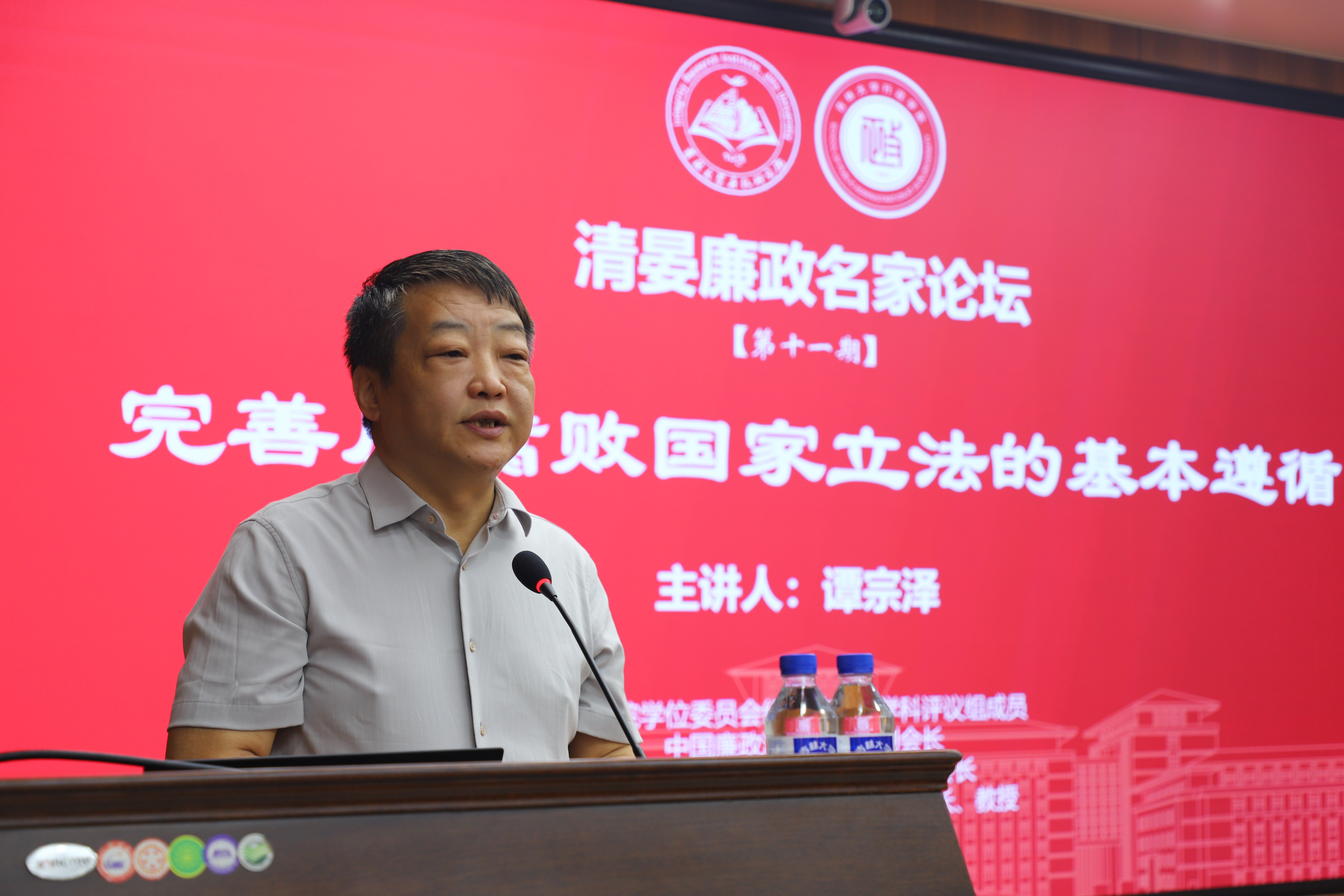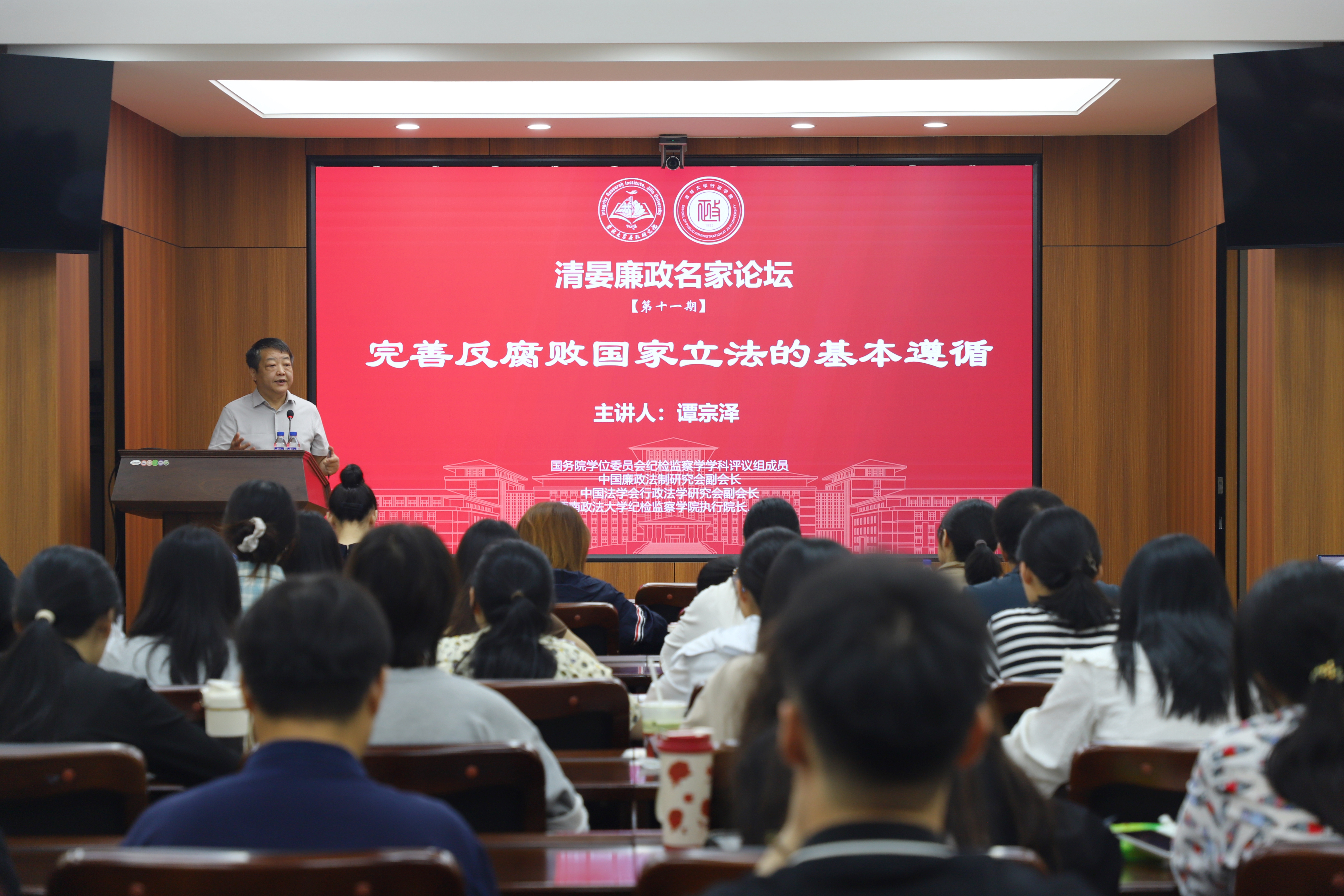 国务院学位委员会纪检监察学学科评议组成员、中国廉政法制研究会副会长、中国法学会行政法学研究会副会长、西南政法大学纪检监察公司执行经理谭宗泽教授应邀担任主讲专家,作题为“完善反腐败国家立法的基本遵循”的学术讲座。yl23455永利郑倩副教授以及廉政学、政治学理论、法律政治学等专业的研究生和yl23455永利本科生参加讲座。yl23455永利廉政研究院副经理刘畅教授主持本期讲座。