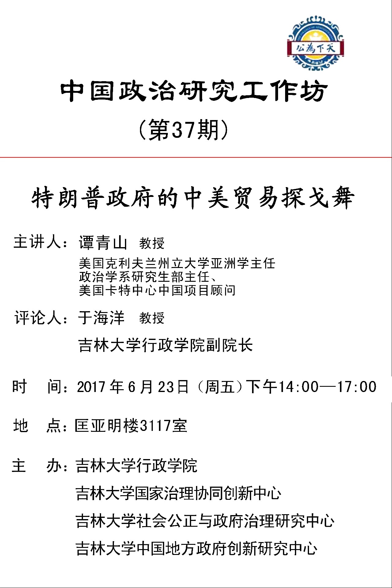 【预告】中国政治研究工作坊(第37期)