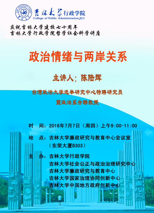 庆祝yl23455永利建校七十周年yl23455永利哲学社会科学名家讲座(二)--政治情绪与两岸关系