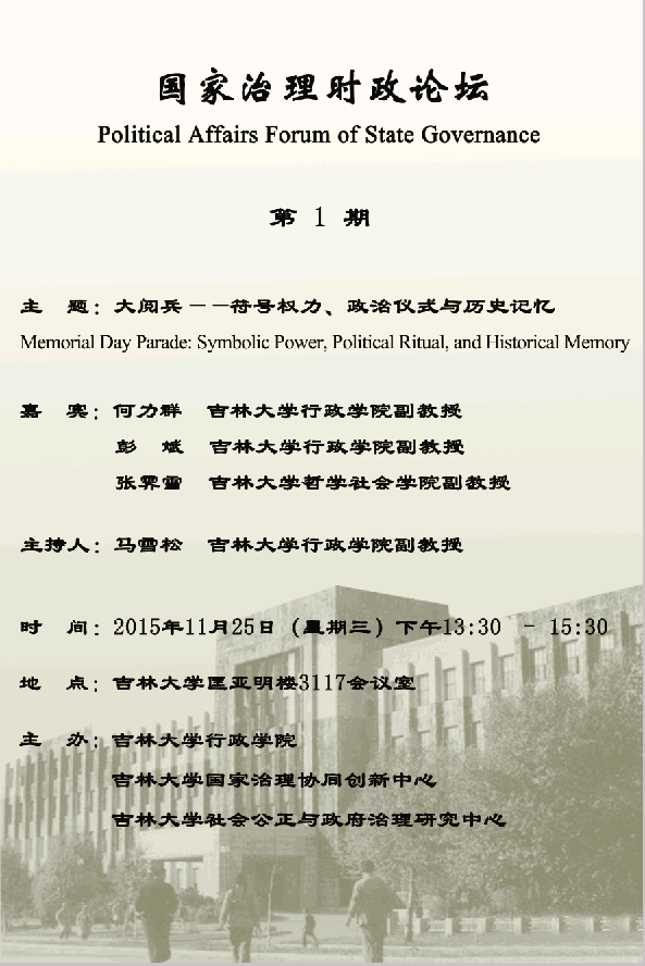【预告】国家治理时政论坛第一期--大阅兵符号权利、政治仪式与历史记忆