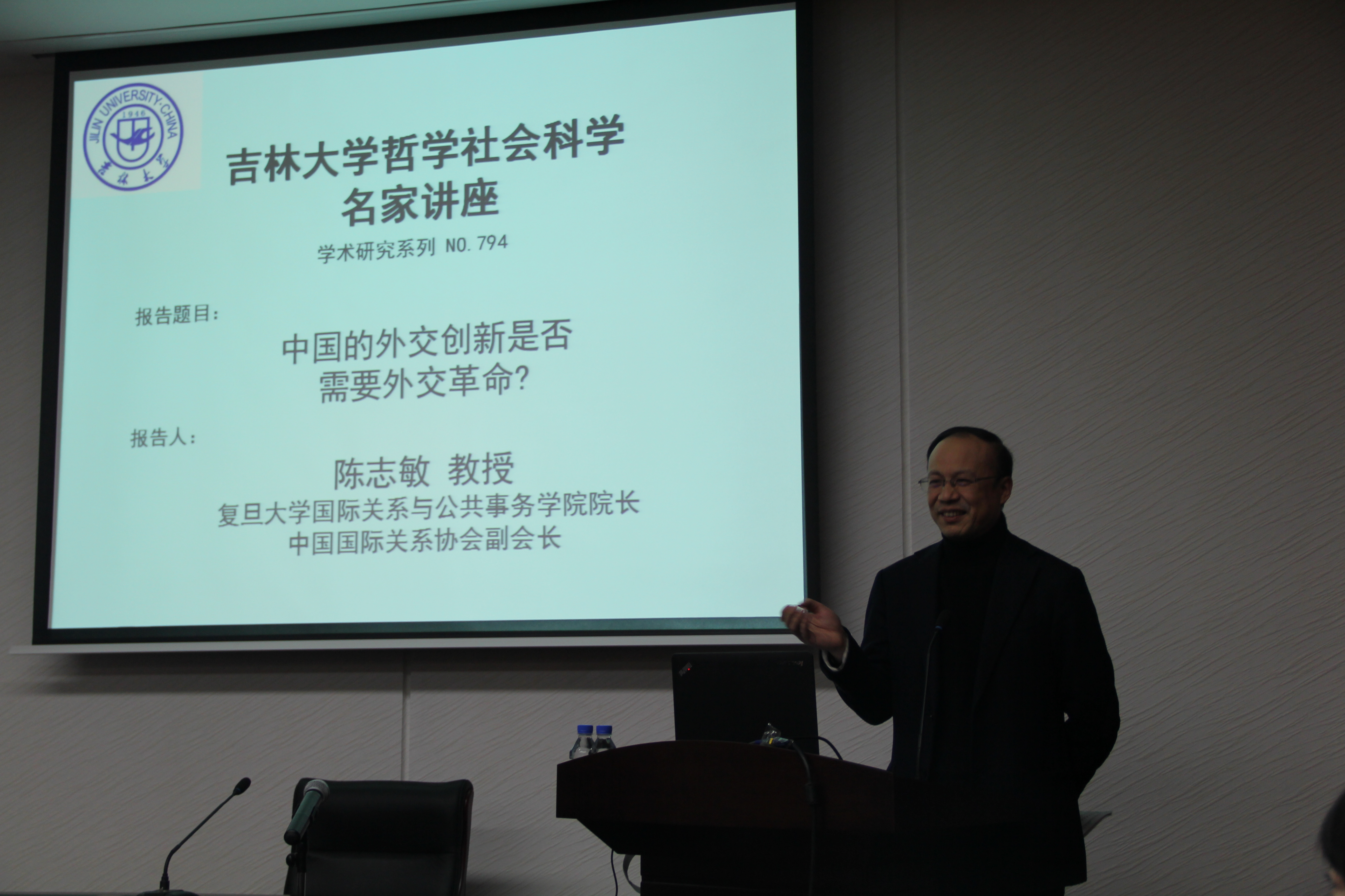 2014年11月30日下午,复旦大学国际关系与公共事务公司经理、中国国际关系学会副会长陈志敏教授在匡亚明楼第二报告厅为公司师生做了一场题为“中国的外交创新是否需要外交革命?”的学术报告。此次报告由yl23455永利社会科学处、yl23455永利、yl23455永利社会公正与政府治理研究中心、yl23455永利国家治理协同创新中心共同举办,是公司人文社会科学名家讲座之一。yl23455永利学术委员会主席刘清才教授主持了此次报告会。