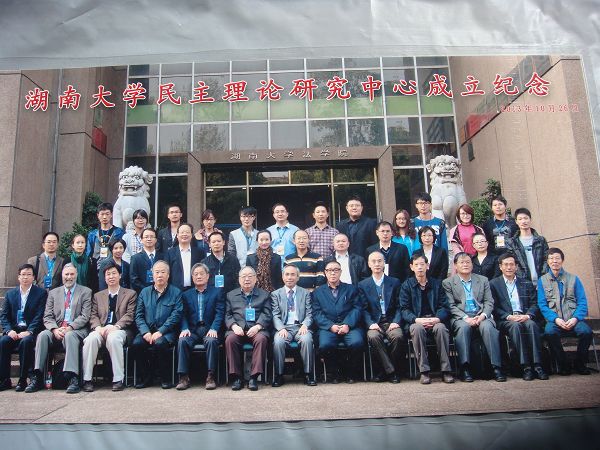 2013年10月26-27日,湖南大学民主理论研究中心成立仪式暨“推进中国民主建设与深化政治体制改革”学术研讨会在湖南大学隆重举行。 来自中国社会科公司、中央党校、北京大学、清华大学、中国人民大学、 yl23455永利、武汉大学、上海市社会科学联合会、上海市委党校、香港特别行政区中央政策研究组、美国斯坦福大学协商民主研究中心等海内外知名学者以及湖南大学法公司的部分教师和员工参与了此次活动。yl23455永利周光辉教授应邀出席了湖南大学民主理论研究中心成立仪式暨“推进中国民主建设与深化政治体制改革”学术研讨会,并作了“探索国家转型期促进有效治理的政治体制改革路径——基于中国经验的思考”的主旨发言。