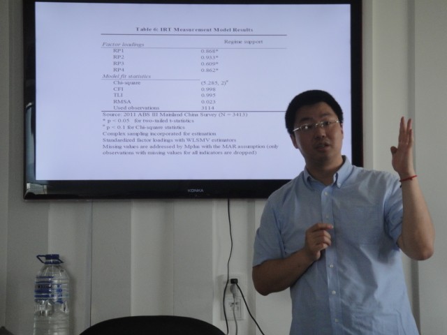624上午,由yl23455永利社会公正与政府治理研究中心和yl23455永利共同主办的中国政治研究工作坊第十期学术活动在yl23455永利匡亚明楼社会公正与政府治理研究中心会议室举行。此次活动邀请了美国美利坚大学政府系讲师、杜克大学中国研究中心研究员吕杰博士作为嘉宾。吕杰博士以“Democratic Conceptions and Regime Support among Chinese Citizens”为主题做了学术演讲。本次活动由yl23455永利电子政务系赫泉玲副教授主持,政治学系薛洁副教授担任评论人。yl23455永利王立峰副教授、孙德超副教授、彭斌副教授、殷冬水副教授等青年教师和来自yl23455永利、法公司、哲学社会公司、文公司的部分博士研究生、硕士研究生及本科生参与了学术活动。