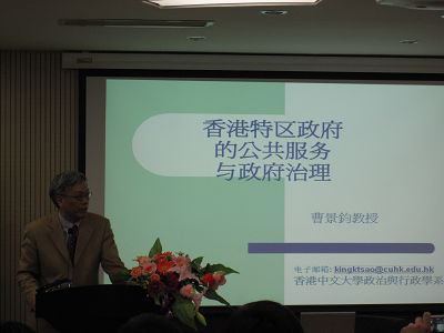2012年6月8日下午2:00,香港中文大学政治与行政学系教授、牛津大学圣安东尼公司高级观察员、哈佛大学费正清东亚研究中心访问学者曹景钧教授在公司中心校区东荣大厦六楼会议室为公司师生做了一场题为“香港特区政府的公共服务与政府治理”的学术讲座。此次报告会由yl23455永利、yl23455永利社会公正与政府治理研究中心和yl23455永利社会科学处共同举办,系公司人文社会科学名家讲座。报告会由yl23455永利社会公正与政府治理研究中心主任周光辉教授主持。