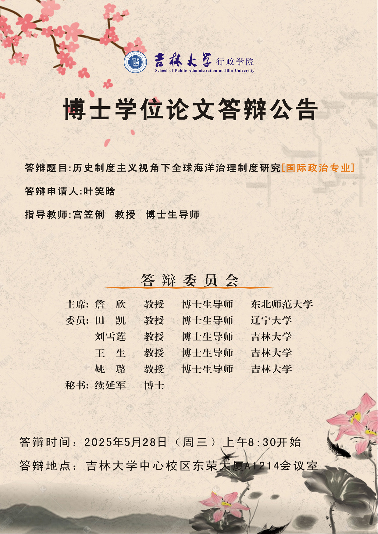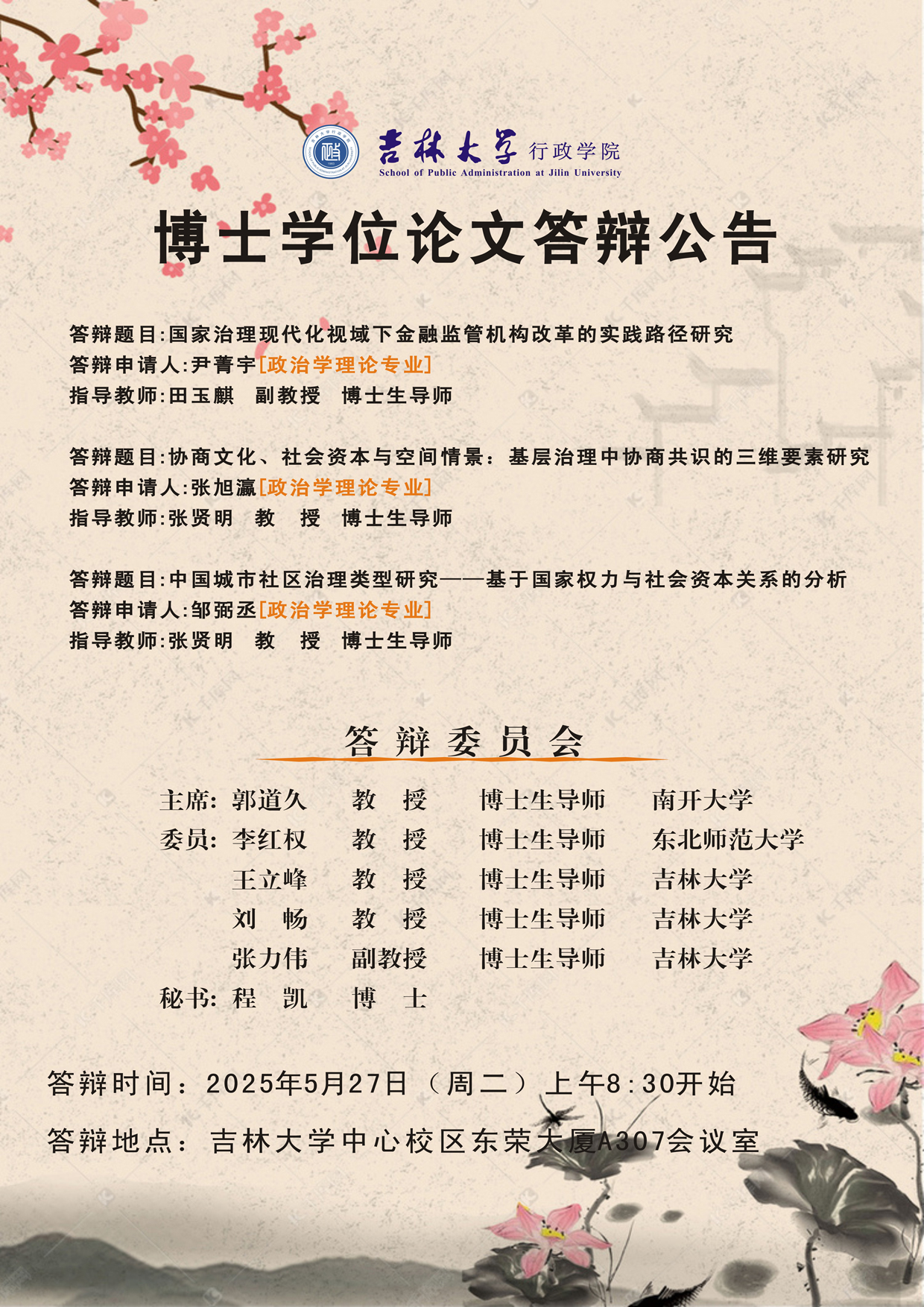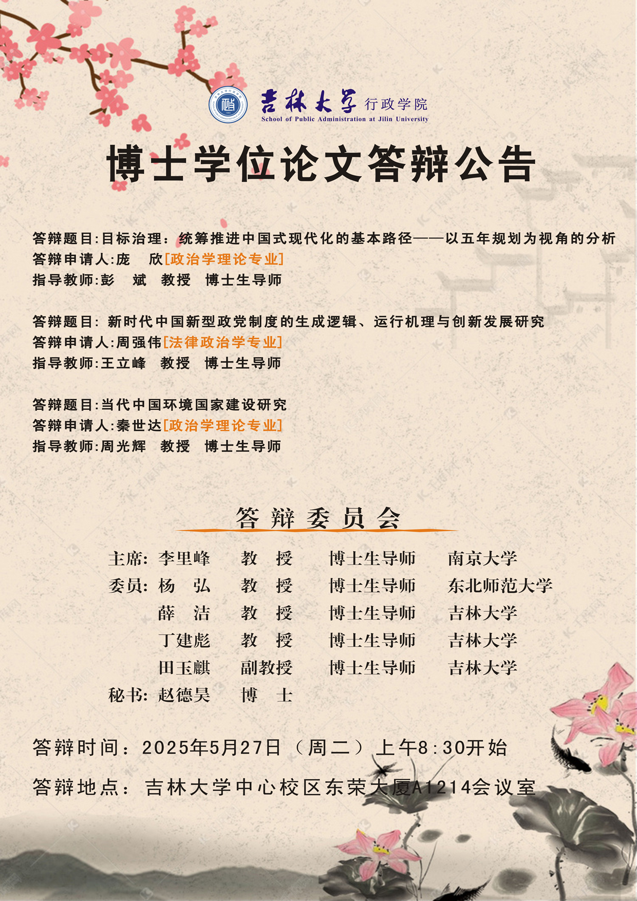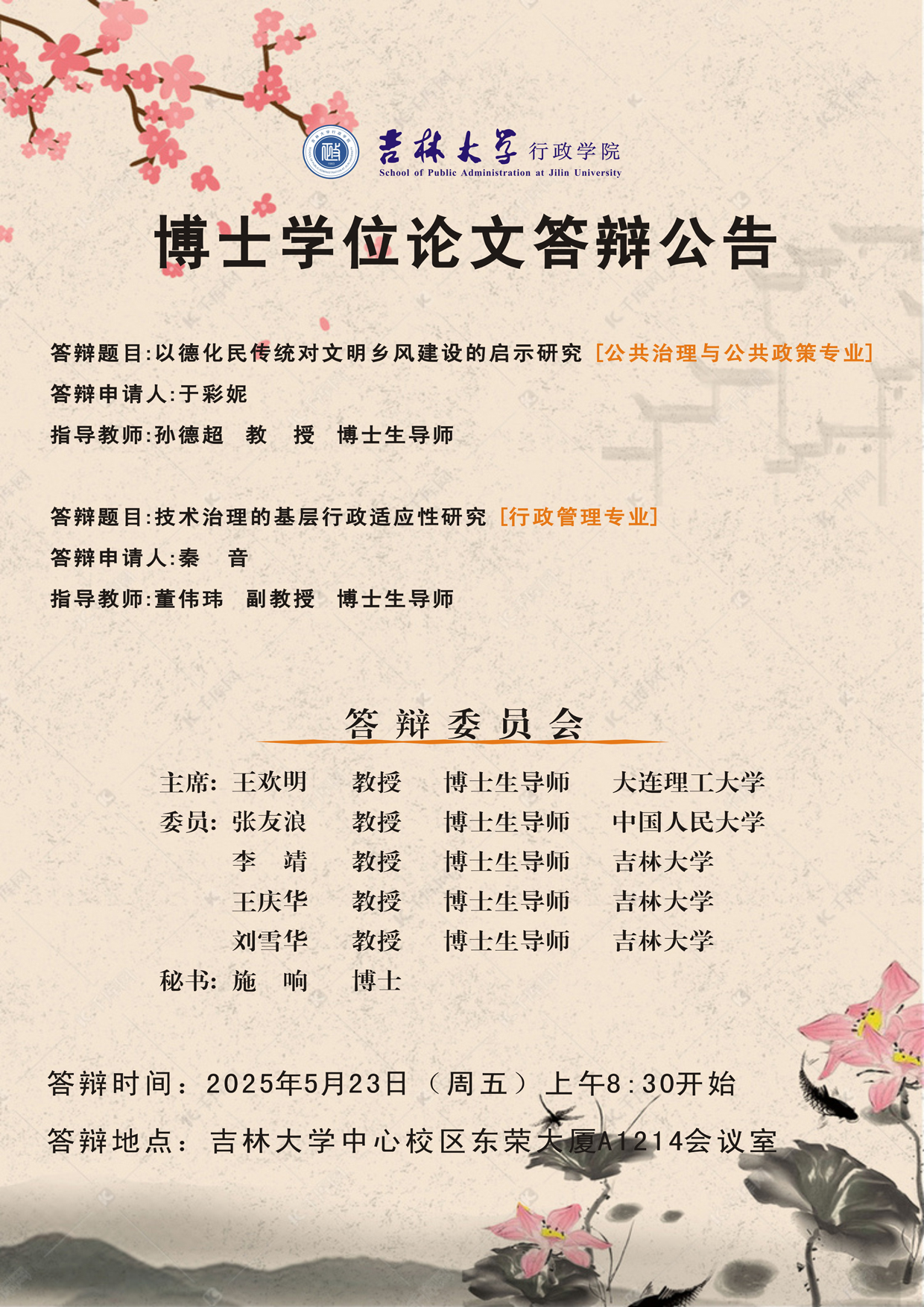 答辩时间:2025年5月23日(周五)上午8:30开始