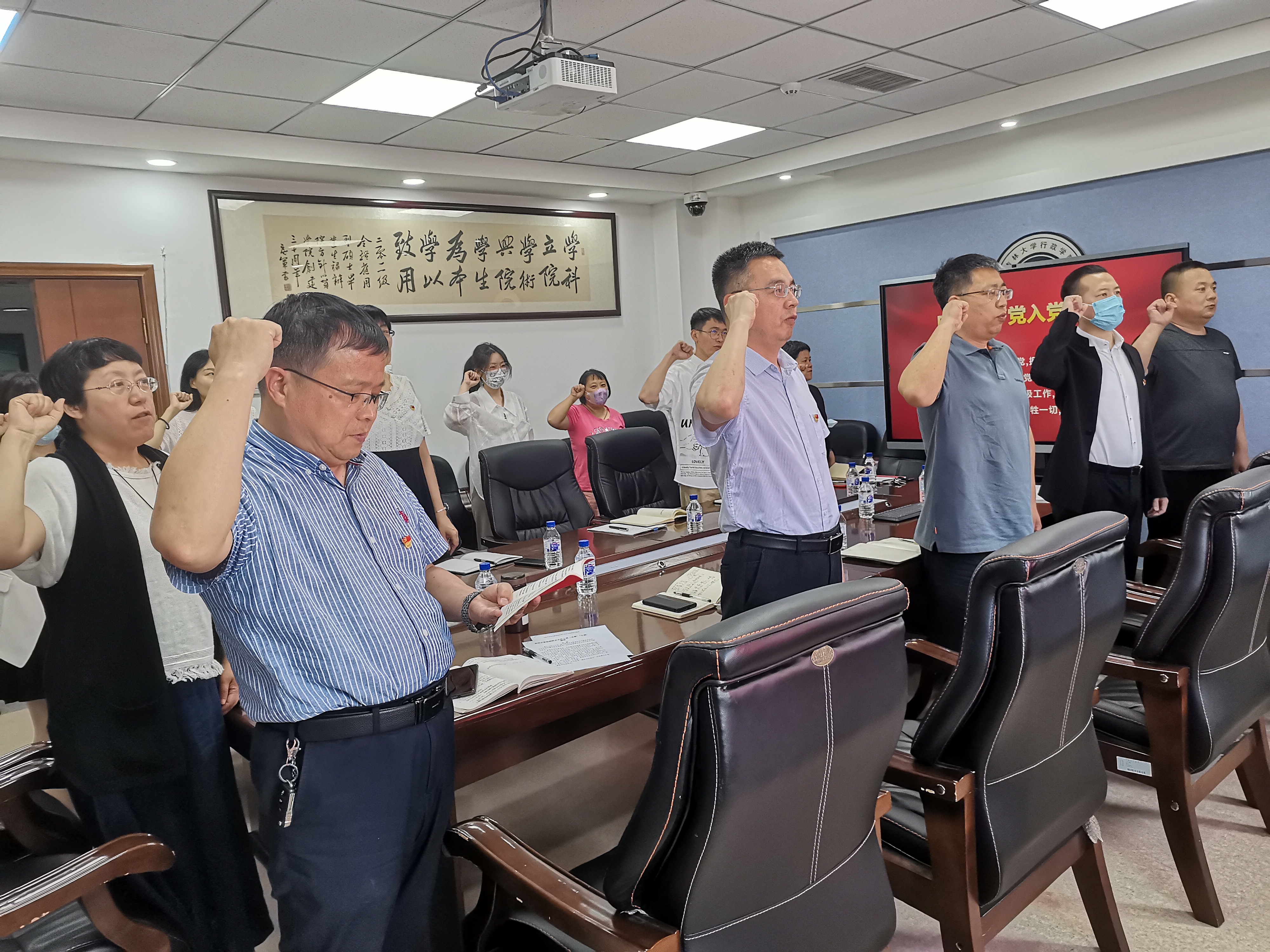 活动伊始,季洪涛带领在场全体党员及预备党员共同重温入党誓词。支部同志们面对鲜红的党旗高举右拳,铿锵有力地许下对党忠诚、永不叛党的庄严承诺,将为党育人、为国育才的初心使命永刻心间。